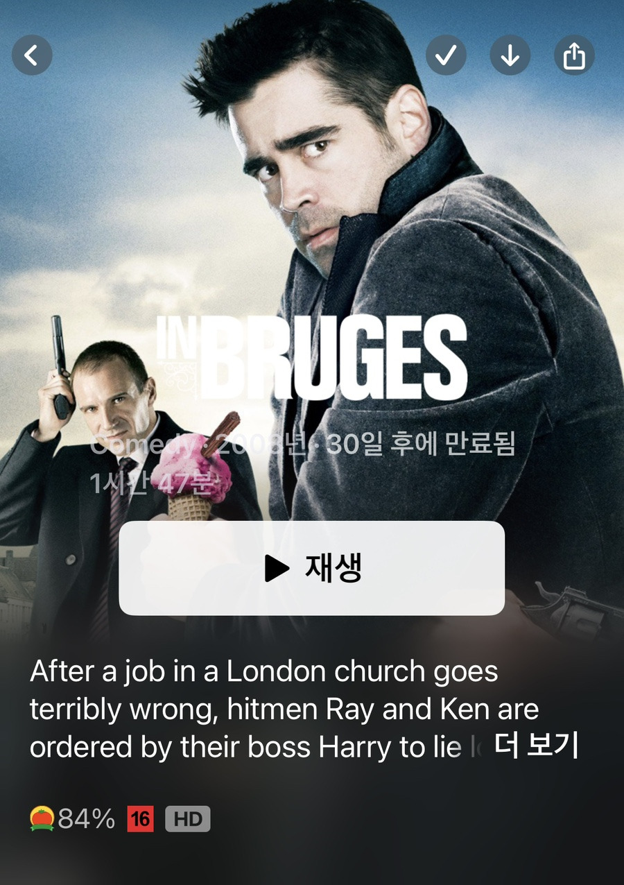 한국 개봉작 명 #킬러들의 도시. 원제는 In Bruges. 마틴 맥도나 감독의 2009년 작품으로 이후 쓰리 빌보드(2018) 의 미조리 주 에빙이나 이니셰린의 밴시(2023)의 이니셰린이 가상의 장소임을 감안할 때, 이 영화는 실제 벨기에의 관광도시 Bruges(브뤼헤/ 브리주)를 배경으로 하면서 그 도시 이름을 영화 제목으로 쓰고 있다.