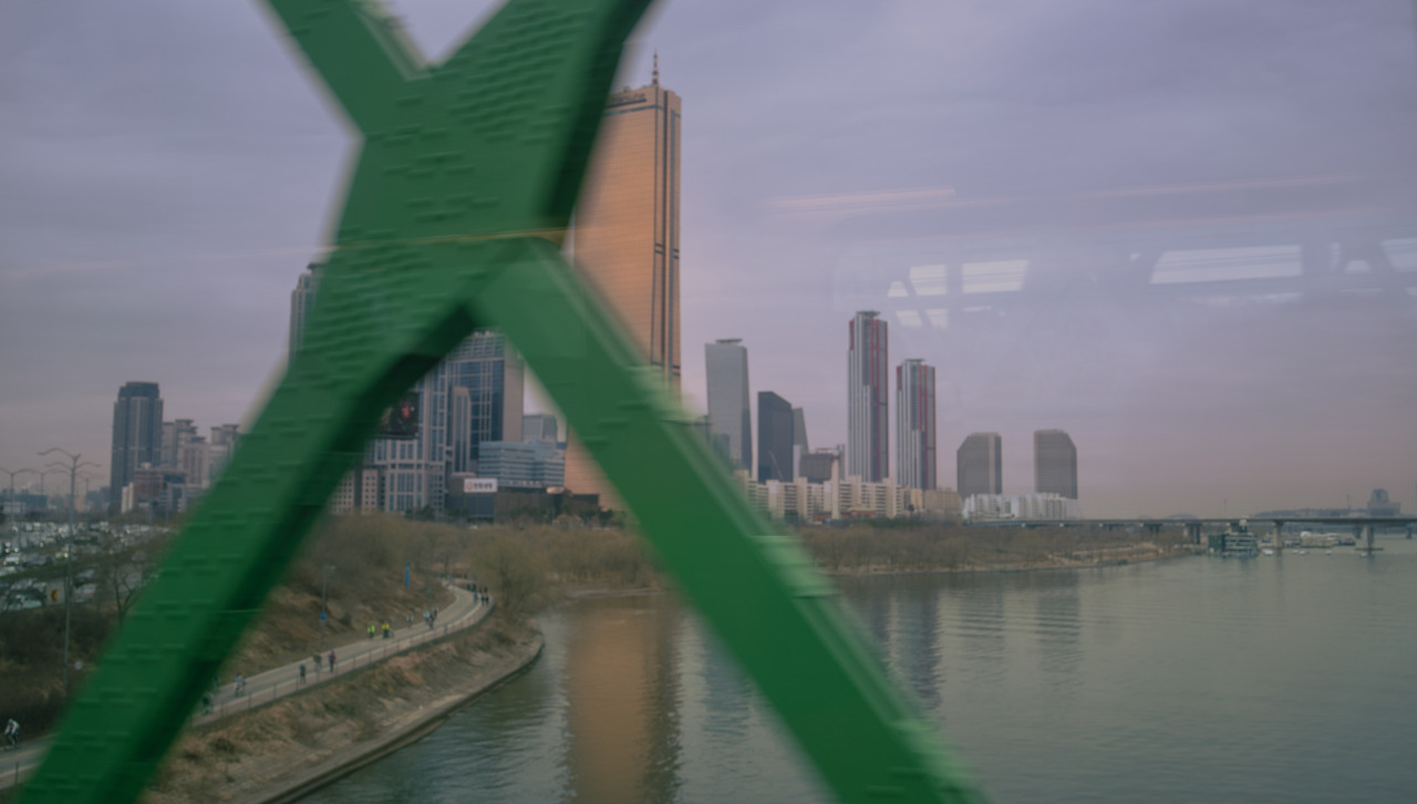 붕 뜬 철교에서, 황량하고 어두운 하늘 아래 홀연한 금빛에 사로잡혀 이십 년 전의 봄으로 돌아가버리는 당신.