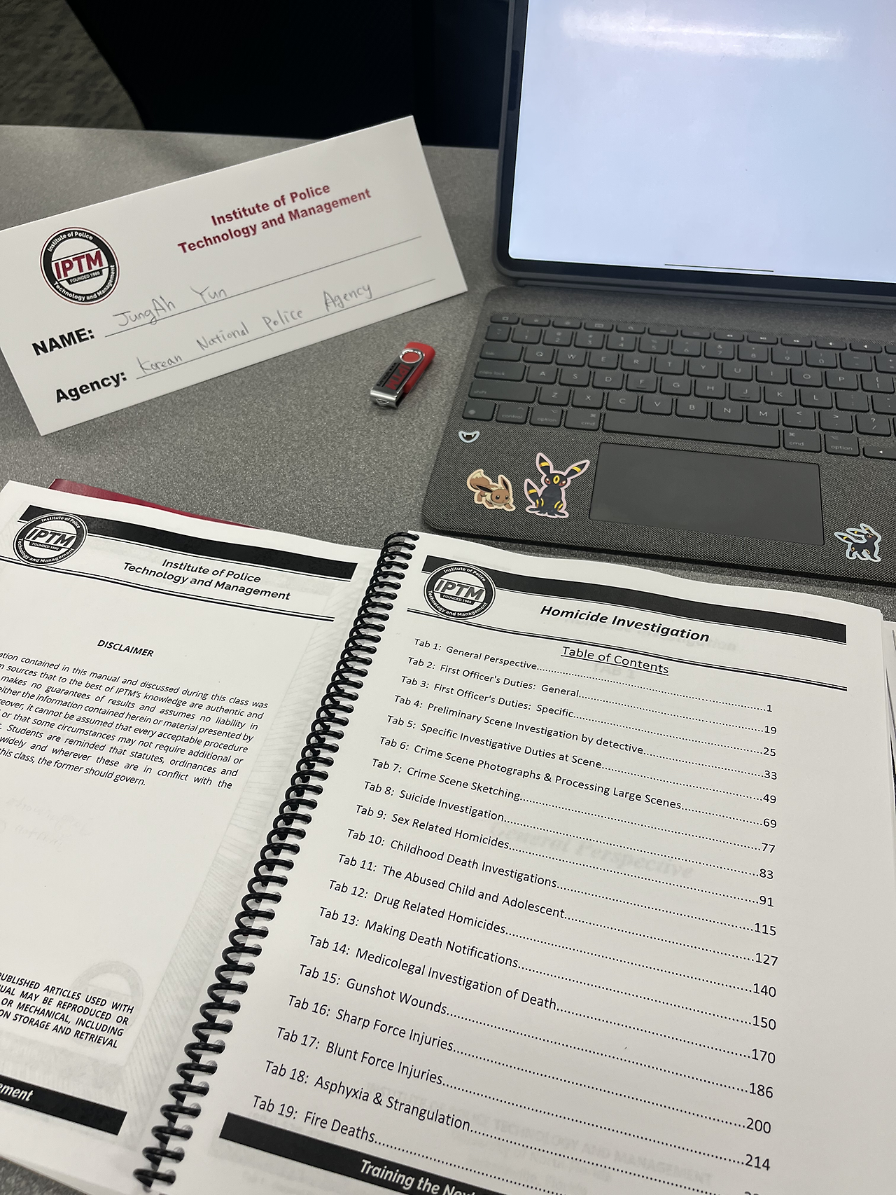 이번주 월요일이 수업 첫날이었어요. 미국 전역에서 모인 경찰관들과 수업을 듣기 시작했습니다.