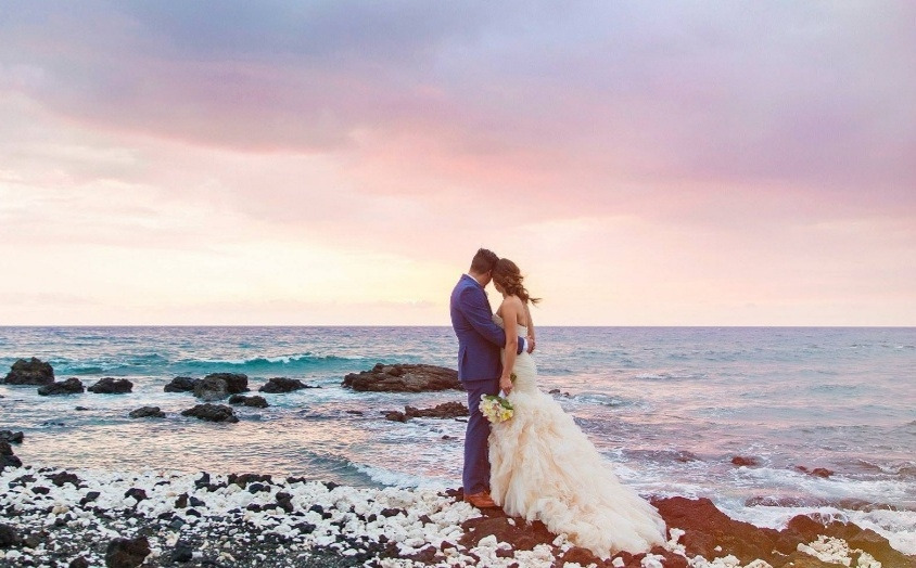 하와이는 꽃잎과 거므틱한 아가씨들과