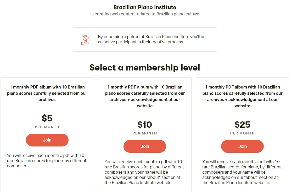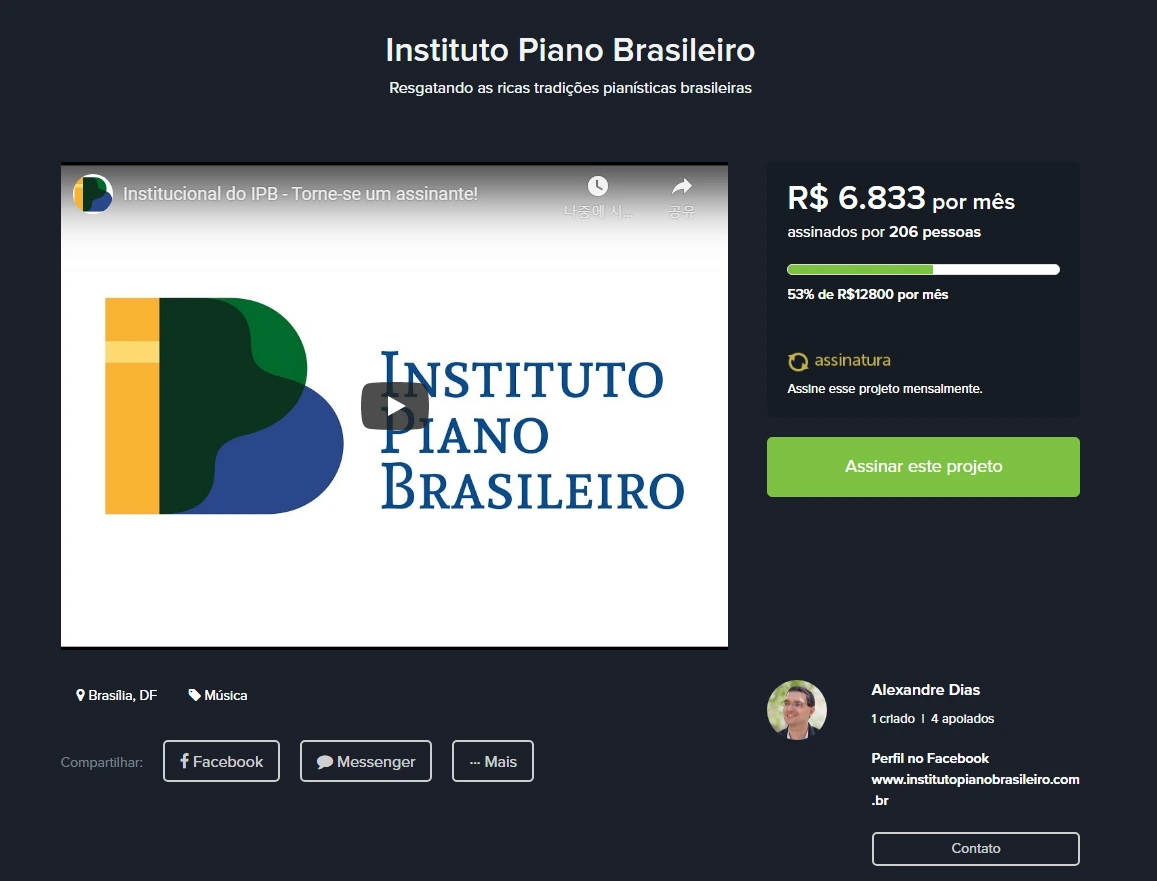 콘텐츠는 여기까지이다. 그럼 이들은 어떻게 기관 운영의 지속가능성을 확보하는가? 크라우드 펀딩, 도네이션을 받는다. 브라질 국내에서는 206명, 외국인도 31명이나 정기 후원을 하고 있다. 이런 작은 움직임에도 사람들이 기부를 한다는 것이 놀랍다. 내가 피아니스트였고 브라질 음악의 매력을 알고 있었다면 아마 후원했을지도 모른다. 정기 후원을 하게 되면 IPB 홈페이지에 후원자로 이름을 올릴 수 있으니, 혹시 관심 있으신 분들은 후원을 해보시는 것도 추천드린다.