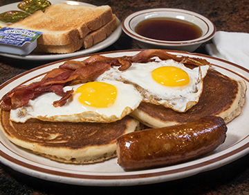 그런 음식이 아마도 럼버잭 아닐까? 팬케이크에 계란, 소시지, 그리고 베이컨. 가장 미국적인 식단을 가지고 있는 이 음식은 그냥 달고 짜다. 뭐 특별할 것도 없고 뭐 화려할 것도 없다. 디럭스 더블 치즈 버거 역시 노란색 아메리칸 치즈가 녹아들어 있고 피클이 듬뿍 담긴 별거 아닌 모습이지만, 참 생각이 많이 나는 메뉴이다.