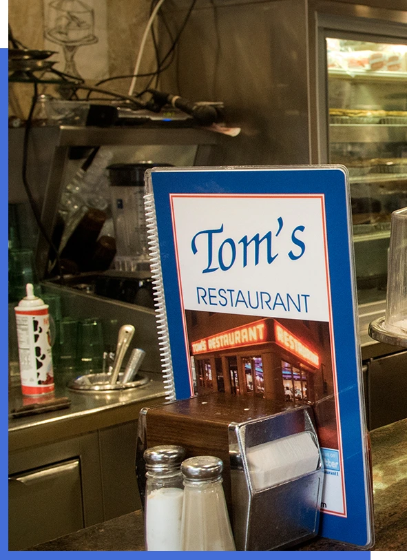 자그마치 1940년 브로드웨이의 끝자락에 다름없었던 지금의 112가에 자리 잡은 톰스 레스토랑은 수자네 베가스가 톰스 다이너로 시작했던 것이 시초이다. 그리스 식당으로 시작했지만, 미국의 상징과도 같은 다이너가 된 이곳은 가장 미국적인 식당으로 꼽힌다. 셰필드 드라마에서 처음 알려지고 많은 영화와 드라마에서 세트처럼 사용된 이곳은 어느 순간 사라지기 어려운 우리네 역사를 담는 그릇이 되어 버렸다.