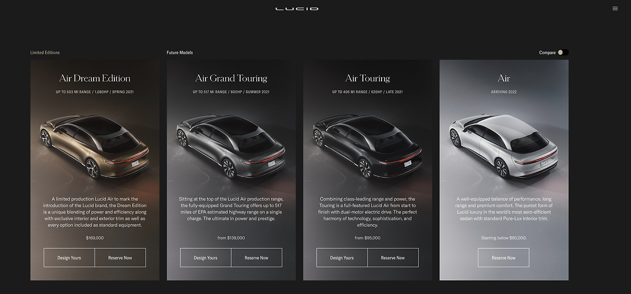 그러나 최근 들어 전기차 전용 자동차 메이커들의 성장은 테슬라의 직접적인 경쟁자로 떠오르고 있다. 제2의 테슬라고 주목받았던 리비안과 루시드는 각각 SUV, 픽업트럭, 또는 세단형 자동차 모델을 각각 내놓으면서 테슬라의 가장 강력한 대항마로 떠오르고 있다. 테슬라 역시 불과 몇 년 전까지만 하더라도 자신들의 전기차 노하우를 공개하면서 자신감을 보였던 모습과는 달리 포드라는 완성차 메이커의 공격적인 지원을 받고 있는 리비안을 상대로 특허 소송에 들어가는 등 불안감을 감추지 못하고 있다.