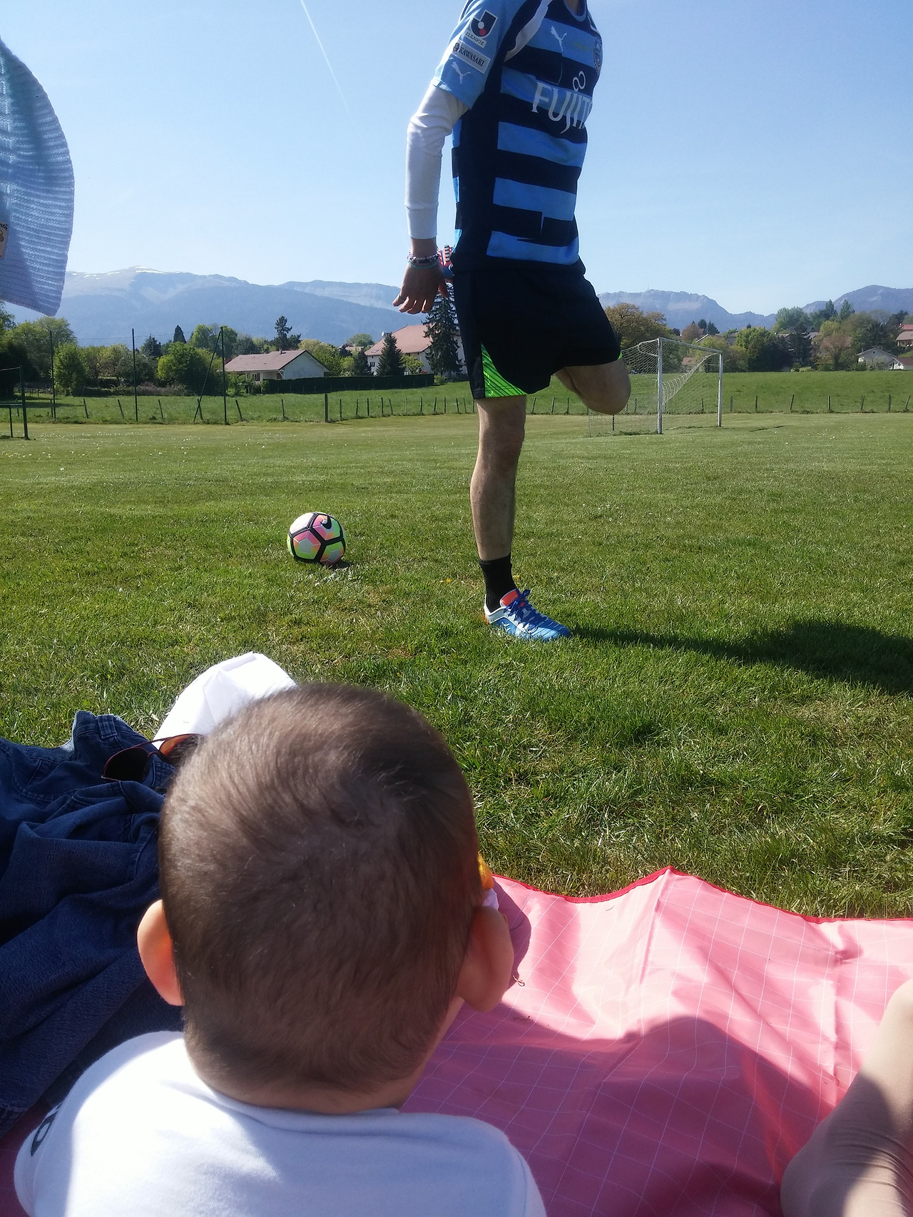 아빠가 훈련하는 모습을 물끄러미 바라보기만 했던 아기가 어느새 걷고, 뛰고, 드디어 공을 다루게 되었다.