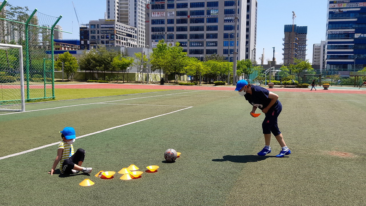 아마도 푸우는 축구 수업을 훈련이라기보다, 형들과 함께 몸을 움직이는 즐거운 활동 정도로 여기는 듯했다. 아이가 곧잘 따라오니 아빠는 신이 나서 수업이 없는 날 개인 훈련까지 병행했다.