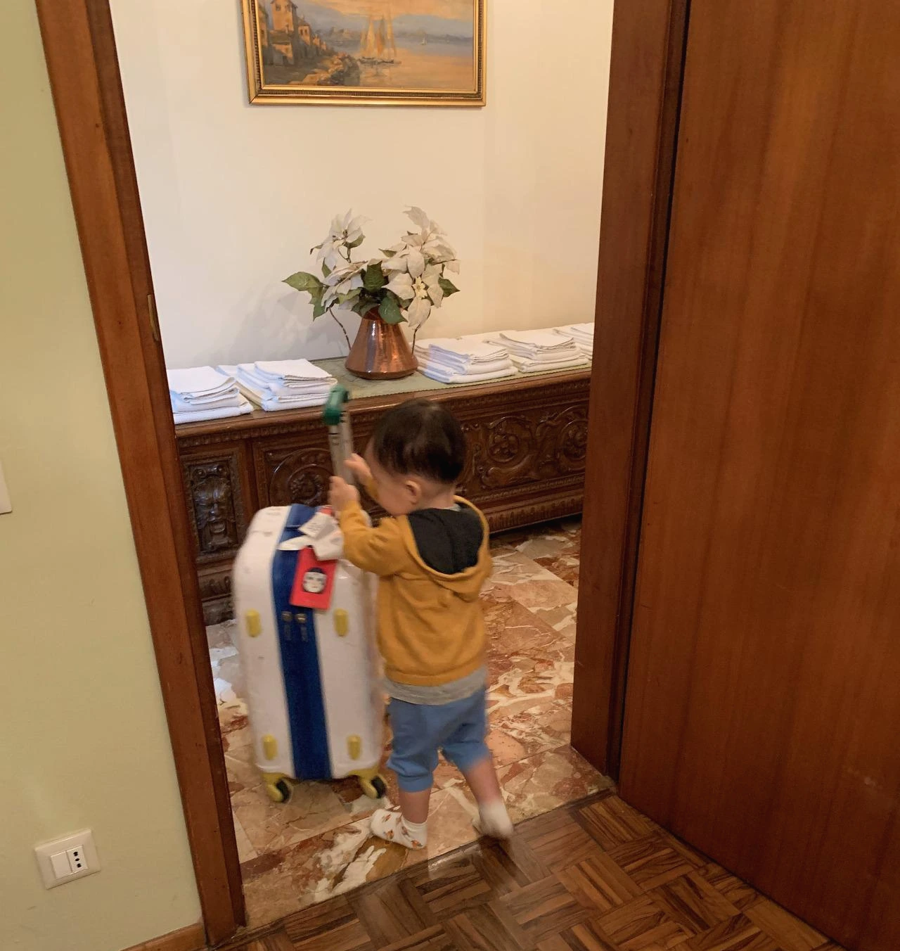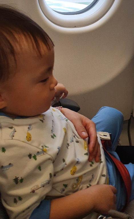 걱정과 달리 비행기가 처음인 우리 아기 문어는 12시간 가까운 비행시간을 너무너무 잘 보내서 모두를 놀라게 했는데, 자동차 장난감은 얼마 풀지도 않았고, 내 폰에 넣어간 비상용 영상도 소환되지 않았다. 비행기를 탄 기념으로 기내 어린이 영화 중 자동차 캐릭터가 나오는걸 잠깐 보여줬는데 신세계를 경험할 줄 알았으나 의외로 반응이 시들해서 껐다. 피곤하면 자고 가끔 지루해질 때쯤 이모와 아빠가 통로 산책을 시켜줬으며, 기내식이 나올 때 아기를 위한 음식이 준비된다고 들어서 승무원에게 요청하니 아기용 주스와 간식을 가져다줬다. 엄마와 아빠의 비건식/저염식 기내식도 먹고 아기 간식도 잘 먹었다. 특히 아기 문어는 오고 가는 이탈리아 승무원들의 사랑을 듬뿍 받았는데 계속 아기 문어에게 띠아모 띠아모를 연발 ♡ 로마행 비행기에서 이탈리아 말 띠아모(Ti amo 당신을 사랑해)를 배웠다. 이후로 로마에서도, 한국에서도 띠아모 해보라고 하면 약간 허스키한 목소리로 "띠아모 띠아모" 하는데 귀여워서 애 귀찮아하는데 계속 시켰다.