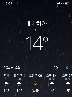 체크아웃 후 렌터카에 짐을 싣고 근처 주차 구역에 세워두고 베네치아 본섬으로 향했다. 비는 그쳤다.