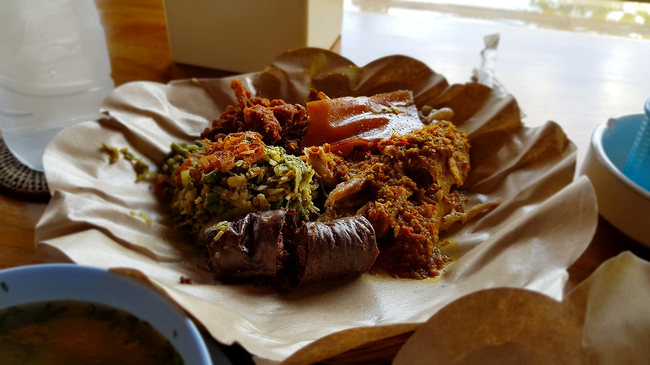 리조트에서 체크아웃을 하고 스미냑 가는 길에 우붓에서 점심을 해결하기로 했습니다. 그 유명한 바비굴링을 먹어보기로 했어요! 당연히 바비굴링 먹으러 간 곳도 많이 알려진 와룽 바비굴링 이부오카 (Warung Babi Guling Ibu Oka). 이 곳에서 식사를 하며 엄마와 저는 한마음 한뜻으로 바비굴링은 입맛이 잘 안맞는다!고 생각했습니다. 돼지껍데기 같은 건 괜찮았지만 전체적으로 향이 강해서 입맛에 잘 안맞았어요. 그래서 배불리 먹진 않고 적당히 배만 채우고 나왔습니다.