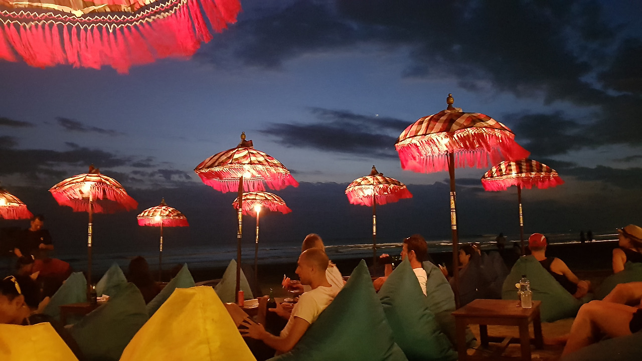 더블 식스 해변에서의 석양은 정말 멋졌어요. 6시 30분쯤 해가 졌던 것으로 기억을 하는데요. 석양과 평화로움을 즐기느라 원래 저녁을 스미냑 거리에 가서 먹으려 했지만, 더블 식스 해변에서 먹었습니다. 해변 앞에 누워 석양을 보며 마시는 칵테일 한잔은! 잊지못할 추억이었습니다. 더블 식스 해변은 더블 식스 호텔에서 1-2분 거리에요. 무척이나 가깝습니다.