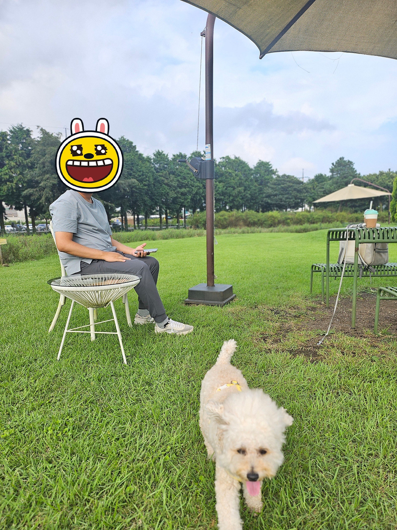 예를 들면 산책 시 신랑에게 맡겨두고 나는 잠시 화장실에 손 닦으러 갔다가 30초 만에 돌아오든, 분리수거를 위해 집 앞에 나갔다가 몇 분 만에 돌아오든, 몇 시간을 외출했다가 돌아오든 언제나 똑같은 강도로 빙글빙글 돌고 우다다다 이리 갔다가 저리 갔다가 전력질주하며 반가움을 표현한다. 마치 수십 년간 헤어졌다가 만난 이산가족처럼 말이다.