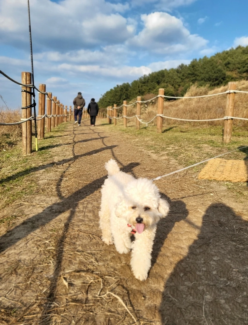 맞은 편에서 까만 스탠더드 푸들이 걸어오고 있었다. 그 아이도 산책을 나온 모양이었다. 덩치는 컸지만 사뿐사뿐한 걸음걸이에서 순한 성격이 느껴졌다. 그 스탠더드 푸들의 견주분도 우리 하루를 보았는지 조심하려는 기색을 보였다. 그 스탠더드 푸들의 견주분이 스탠더드 푸들의 줄을 당겨 길 한쪽 편으로 비켜서게 했다. 나도 나름의 준비를 하고 하루와 지나갔다. 하루의 시야에서 스탠더드 푸들이 내 몸으로 가려지도록, 내가 길 안쪽으로 하루를 길 바깥쪽으로 걷게 했다.
