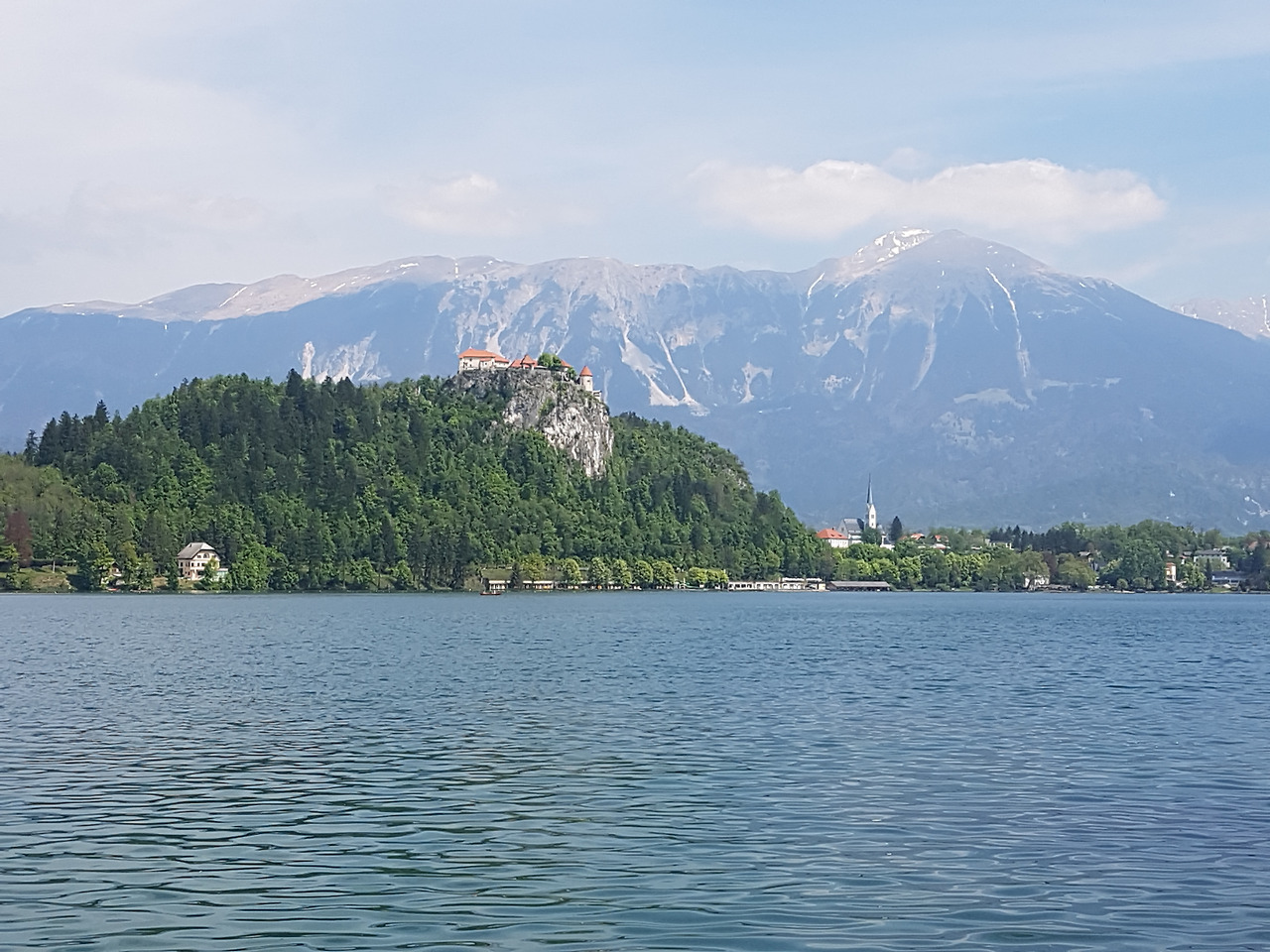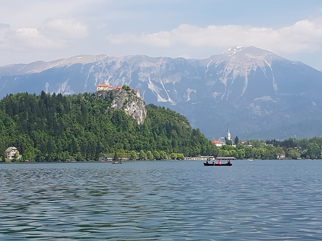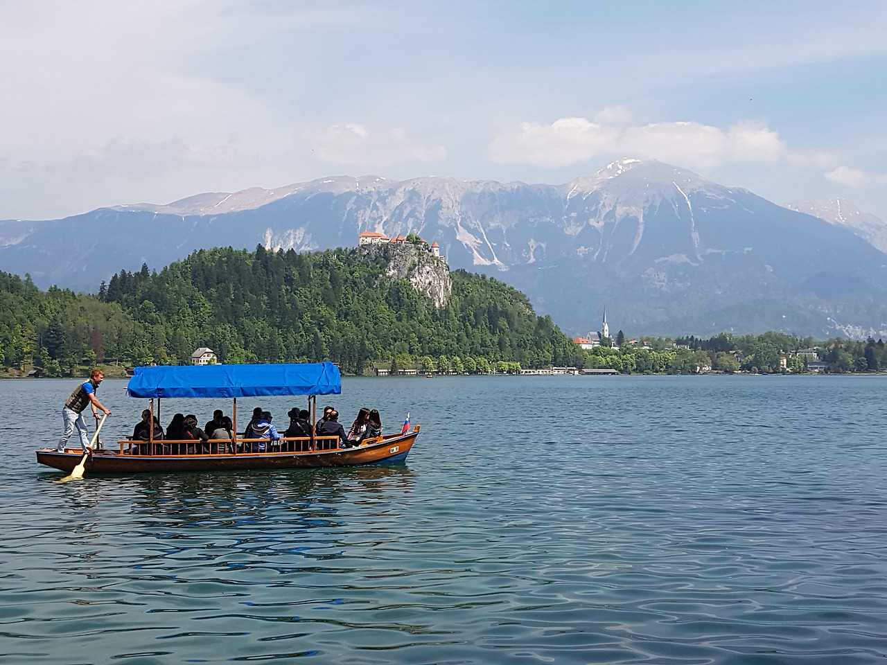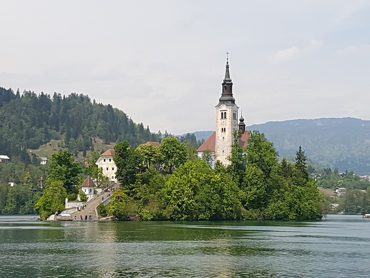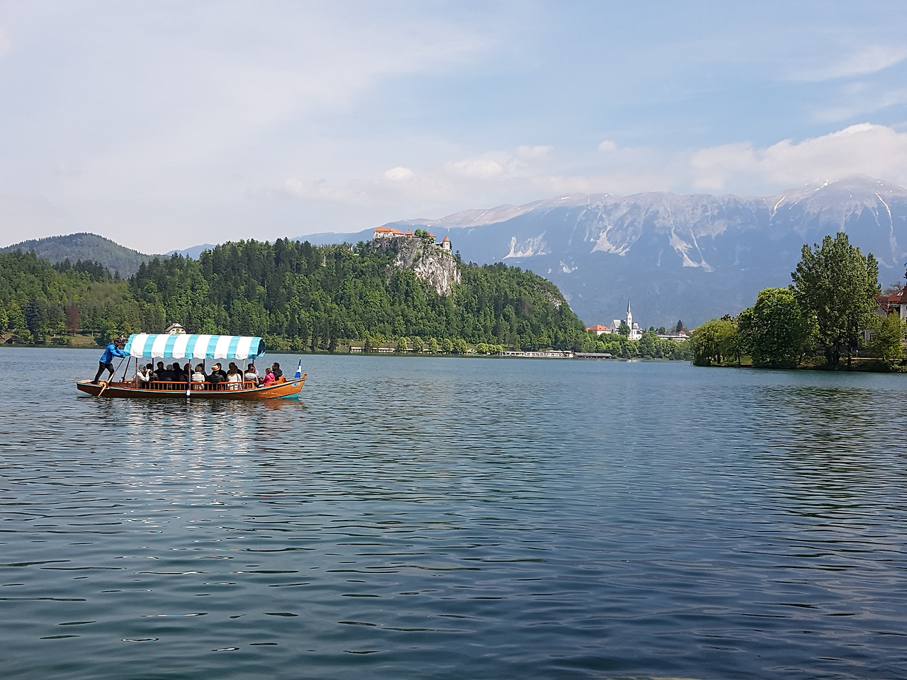 호숫가에서 이 섬까지 관광객을 실어 나르는 나룻배인 pletana는 넘쳐 나는 관광객으로 큰 호황을 누리고 있었다. 배가 줄지어 관광객을 실어 나르고 돌아오는 모습이 마치 호수 위에서 기차가 줄지어 지나가는 것 같다. 3년 전에 같은 나룻배를 타려고 오래 기다렸던 기억이 새삼스럽다. 그때는 사람 수가 채워지지 않아 한참을 기다리다 배가 출발했다. 역시 단체관광객의 힘은 대단하다.