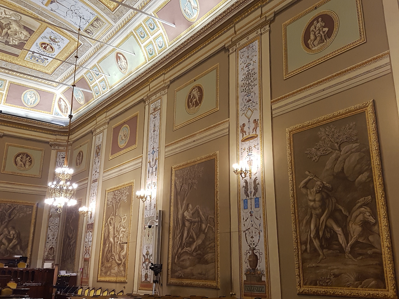 각 룸마다 특색이 있고, 화려한 천장 모자이크 장식이나 벽화가 존재한다.
