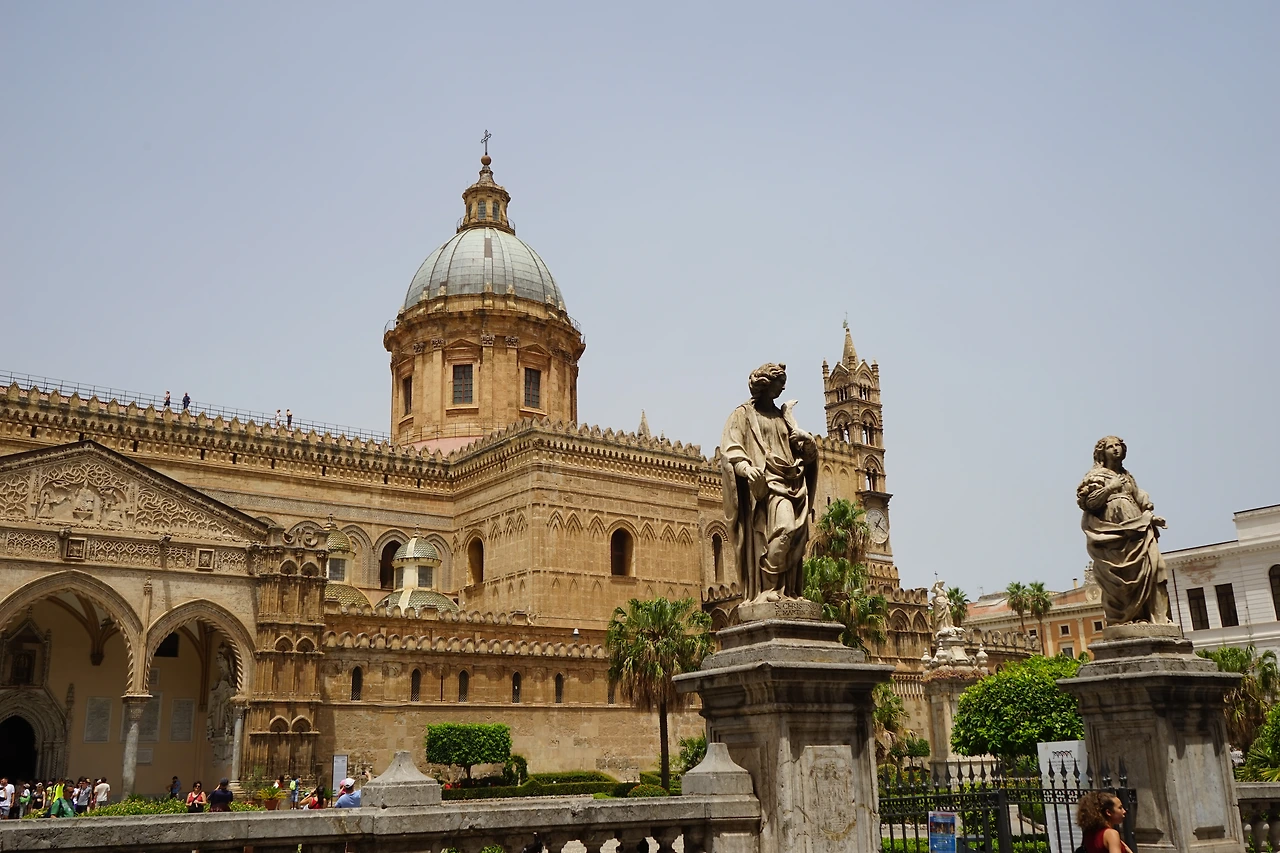 팔레르모 시내의 대성당은 1185년부터 건설된 아랍-노르만 양식의 건축물이다.