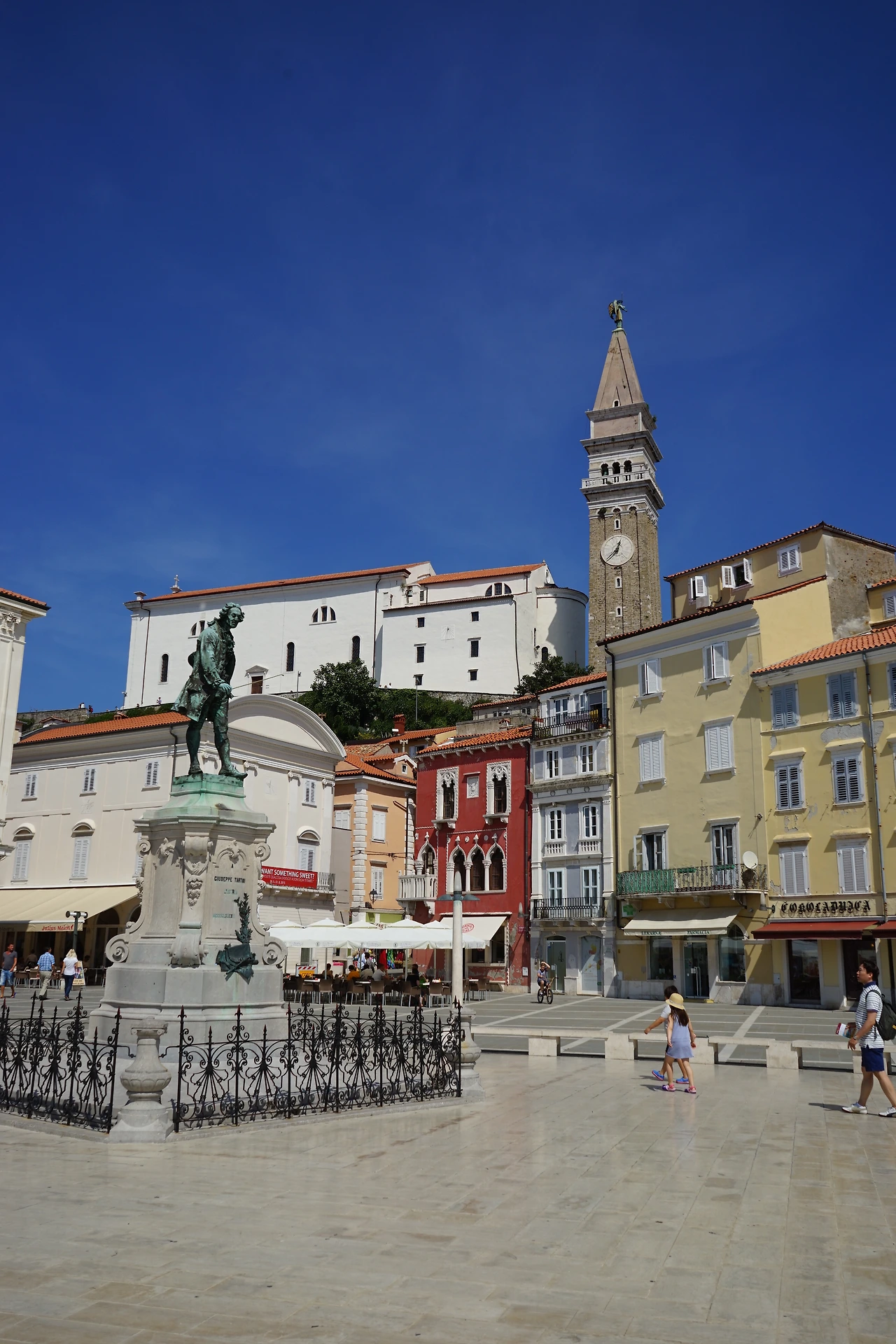 피란 출신 국민 음악가 주세페 타르티니 동상이 있는 시청 앞 광장이다.