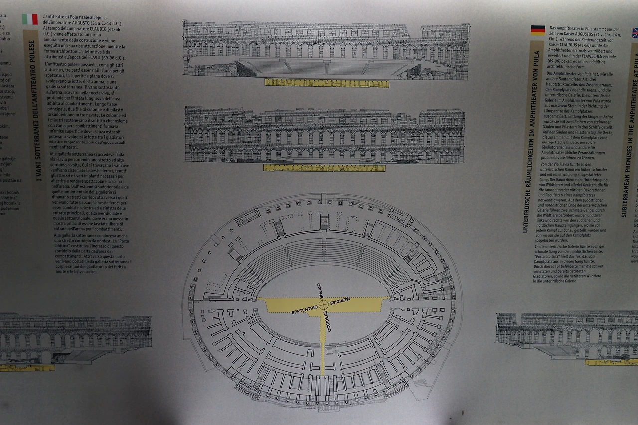 풀라는 무엇보다 비교적 잘 보존된 원형경기장으로 유명한 도시이다. 가끔씩 오페라와 같은 공연도 열린다고 하고... (이탈리아 베로나의 원형경기장에서 아이다 공연을 꼭 보리라 다짐했었는데, 이곳에서도 풀라 원형경기장과 약속만 하고 오늘은 그냥 이 건축물 자체를 느끼자~)