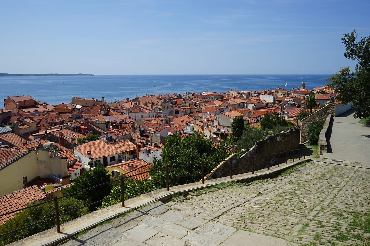 타르티니 광장을 지나 계단을 올라 성벽에 오르면 바다가 보이는 확 트인 전망이 나타난다. 이 전망대에서 이탈리아도 보인다고 한다. 실제로 이탈리아와도 그다지 멀지 않다.