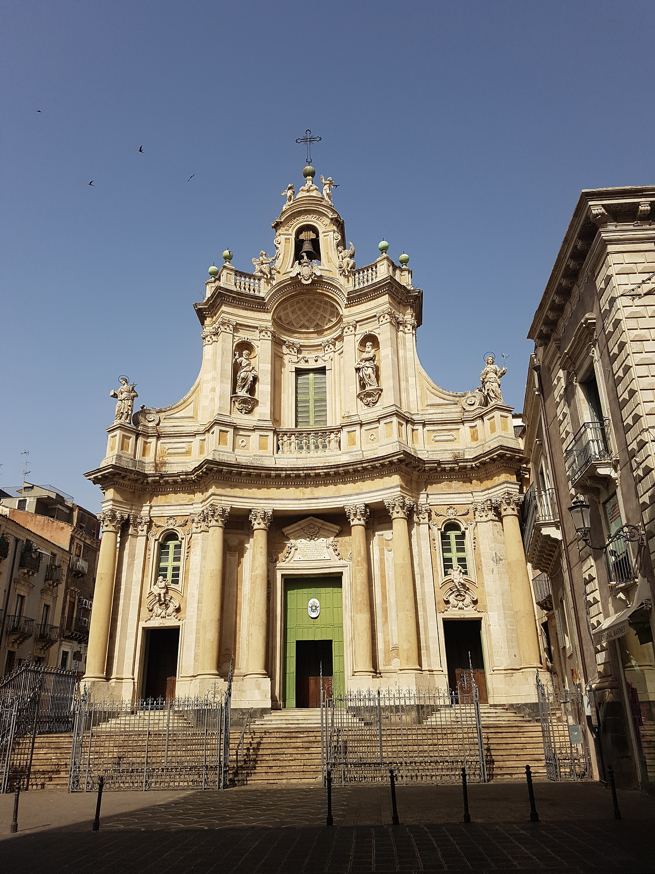 에트네아 거리에 있는 Bascilica della Collegita (엘리모시나의 산타마리아 성당으로 불리기도 함)은 1768년 완공된 시칠리아 바로크의 대표작이다. Angelo Italia가 지진으로 파괴된 카타니아에 바로크식으로 지은 대표적 건축물이다.