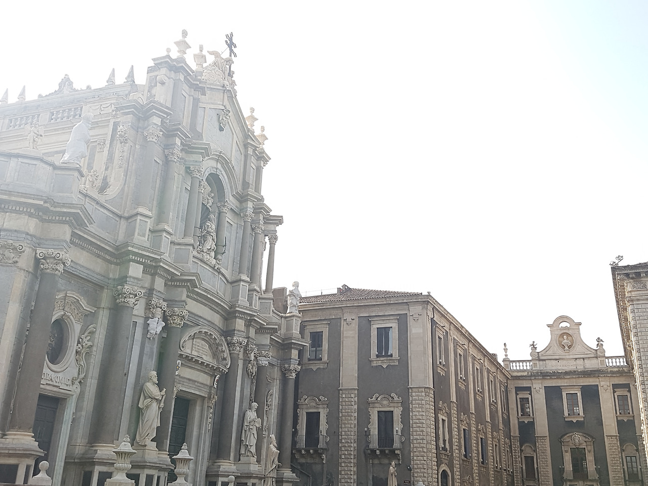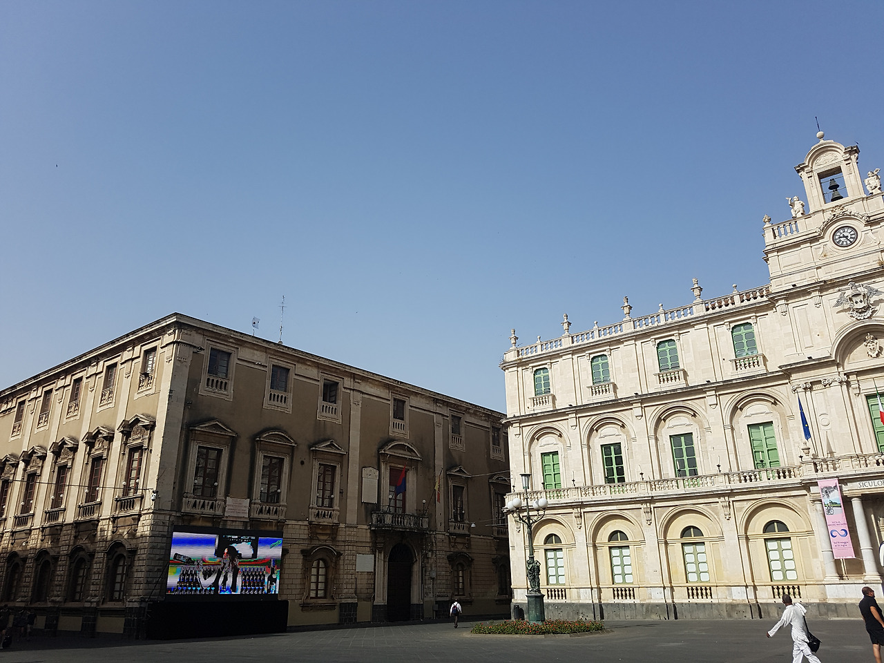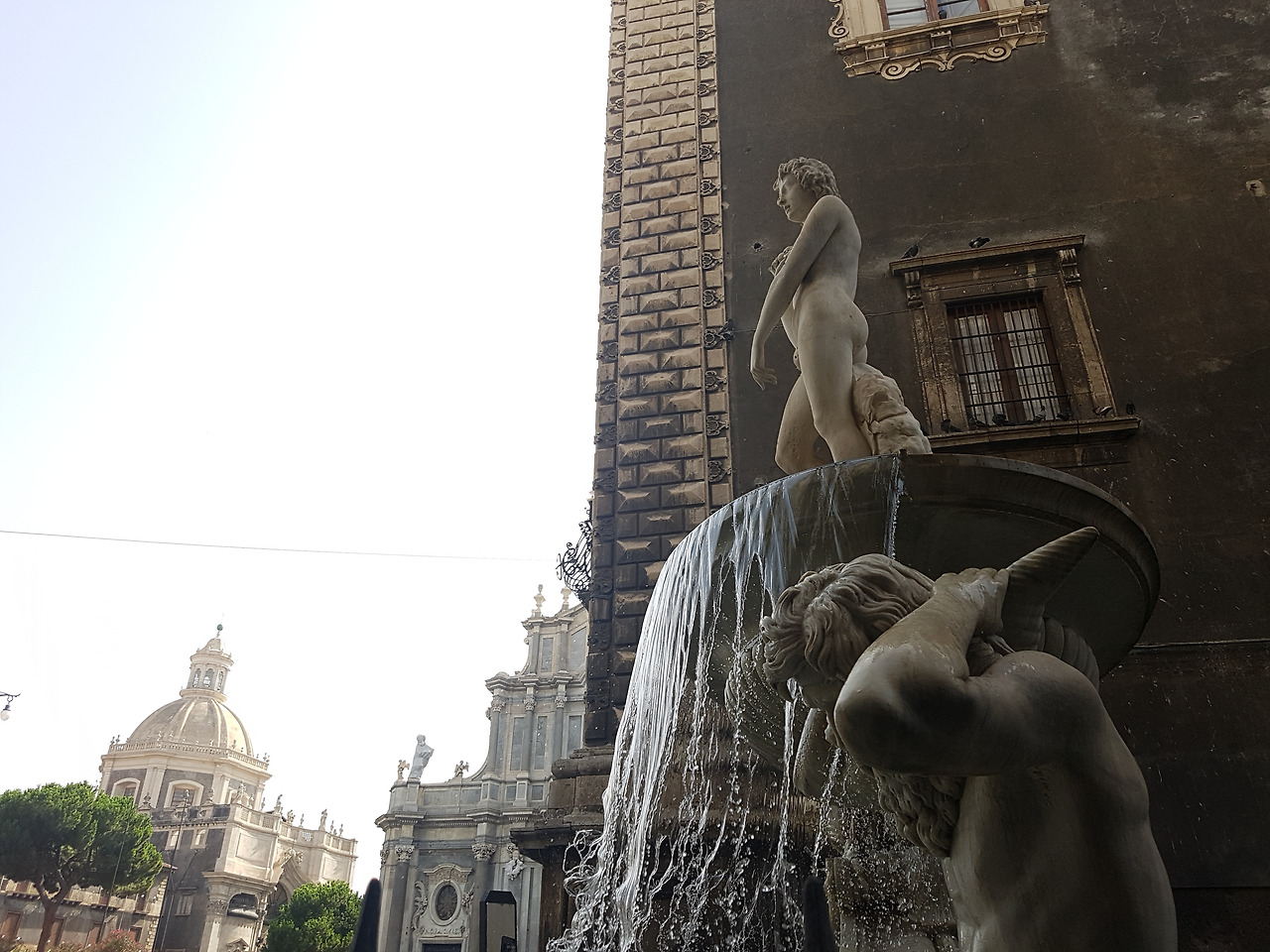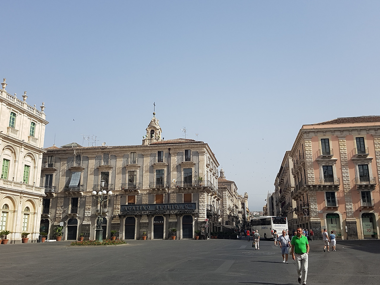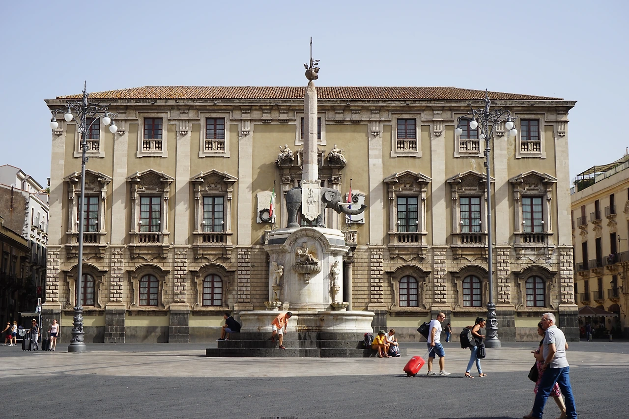 구시가 중심광장으로 대리석 바닥에 용암과 석회암이 대비를 이루는 건물들이 조화롭게 펼쳐져 있는 멋진 광장이다. 시라쿠스 두오모 광장과 더불어 시칠리아에서 가장 아름다운, 기억에 영원히 남기고 싶은 광장이었다. 광장 중심엔 Fontana dell'Elefante라는 코끼리 동상 분수가 있다. 1736년 건설된 것으로 순진하게 웃고 있는 용암으로 만든 카타니아의 대표 아이콘 코끼리의 모습이 카타니아를 찾는 관광객들을 기쁘게 한다. 코끼리는 이집트 오벨리스크를 등에 이고 있다.