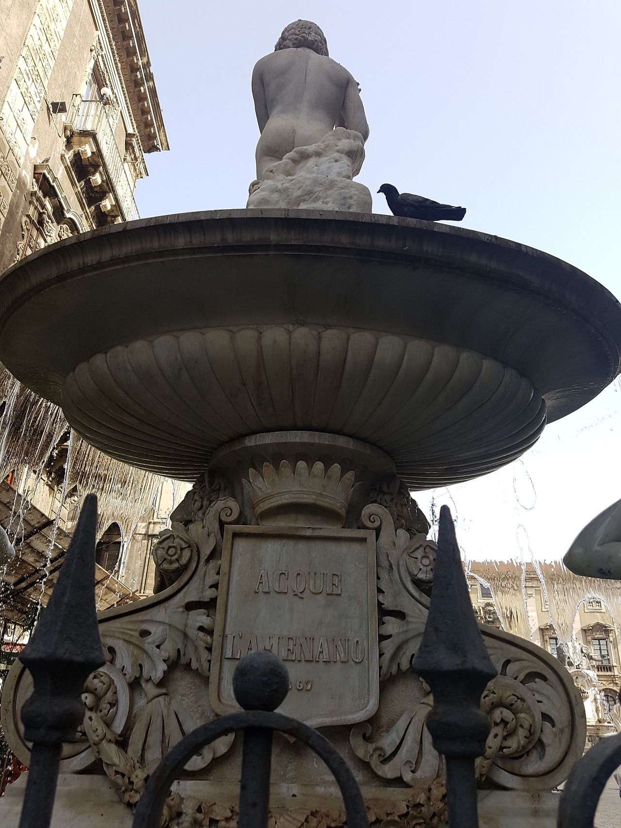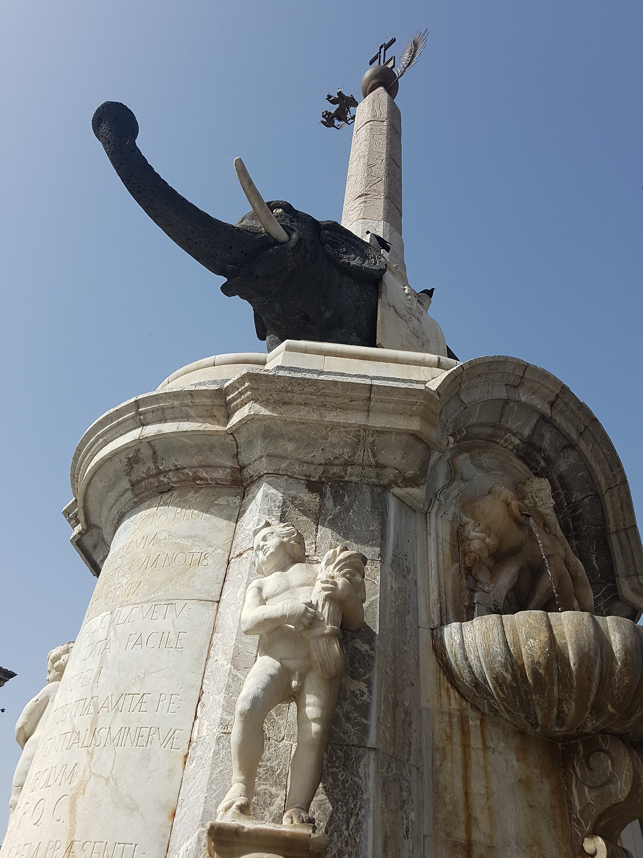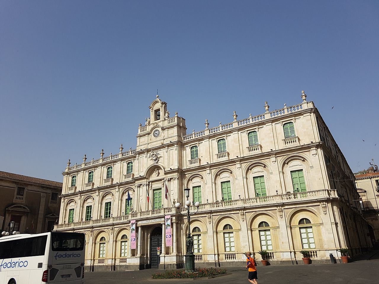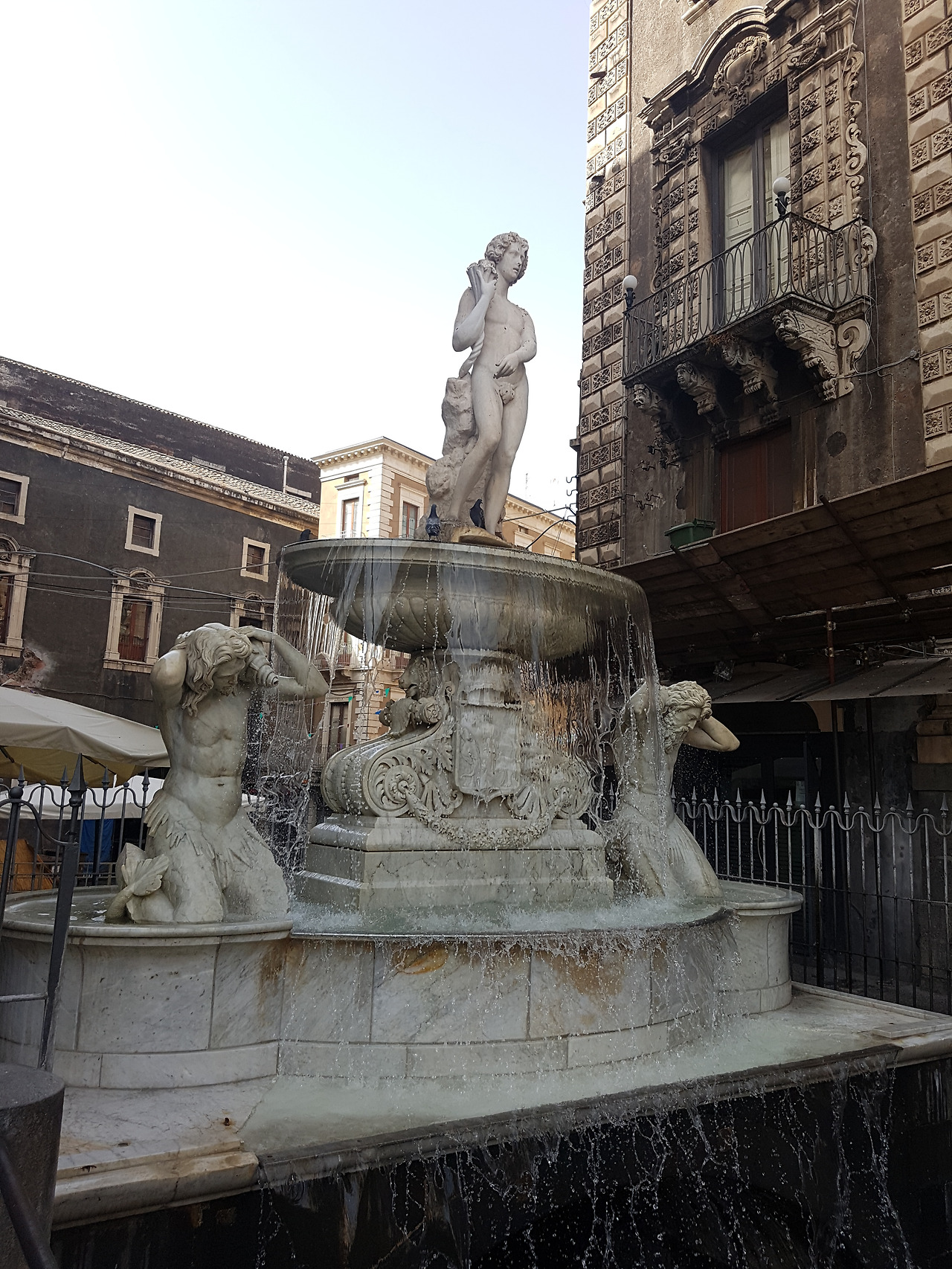 구시가 중심광장으로 대리석 바닥에 용암과 석회암이 대비를 이루는 건물들이 조화롭게 펼쳐져 있는 멋진 광장이다. 시라쿠스 두오모 광장과 더불어 시칠리아에서 가장 아름다운, 기억에 영원히 남기고 싶은 광장이었다. 광장 중심엔 Fontana dell'Elefante라는 코끼리 동상 분수가 있다. 1736년 건설된 것으로 순진하게 웃고 있는 용암으로 만든 카타니아의 대표 아이콘 코끼리의 모습이 카타니아를 찾는 관광객들을 기쁘게 한다. 코끼리는 이집트 오벨리스크를 등에 이고 있다.