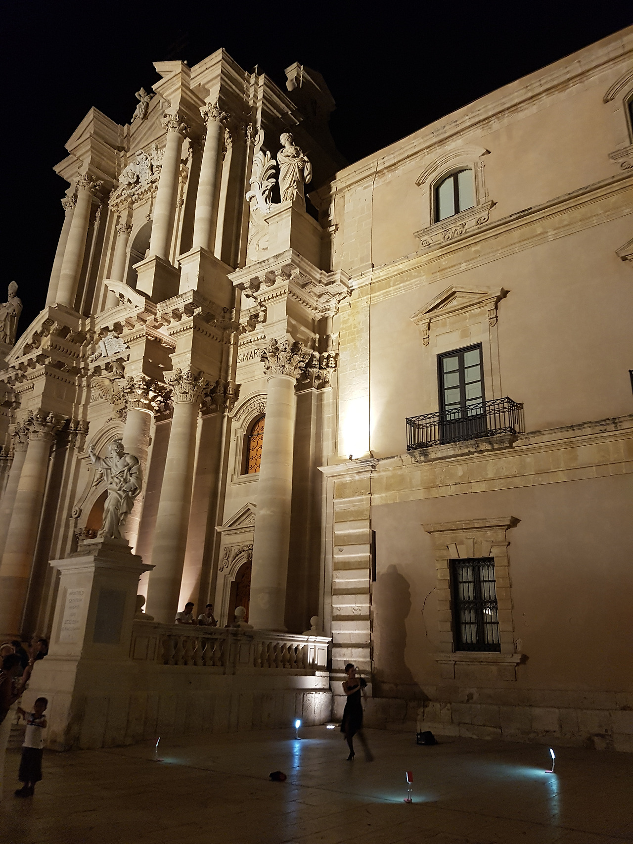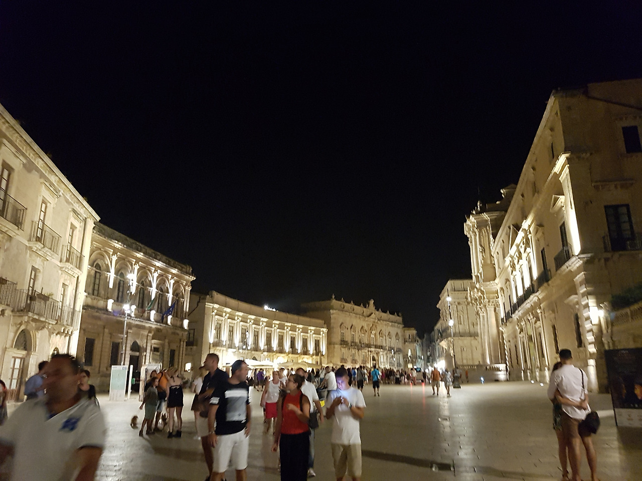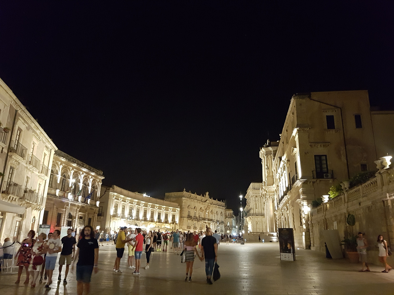 시라쿠스(Syracuse)는 본토와 다리로 연결된 작은 섬인 오르티지아(Ortygia)로 구성되어 있는데 핵심 관광지는 아무래도 오르티지아이다. 우리 가족은 날씨가 무척 더워 해변에서의 일정을 많이 늘리기로 하고, 시라쿠스 쪽은 관광을 아예 생략했다. 많은 유럽인들은 낮에 해변에서 편안하게 늘어진 휴식을 취하고 밤에 시내에 잘 차려입고 나오는 것 같다. 특히 한여름엔 그런 식의 관광이 가능한 곳은 한낮의 땡볕 더위도 피할 수 있고 효율적인 관광이 될 듯하다. 물론 실내의 출입시간이 제한되어 있는 곳이 관광목적으로 중요하다면 밤에 볼 수는 없는 일이다.