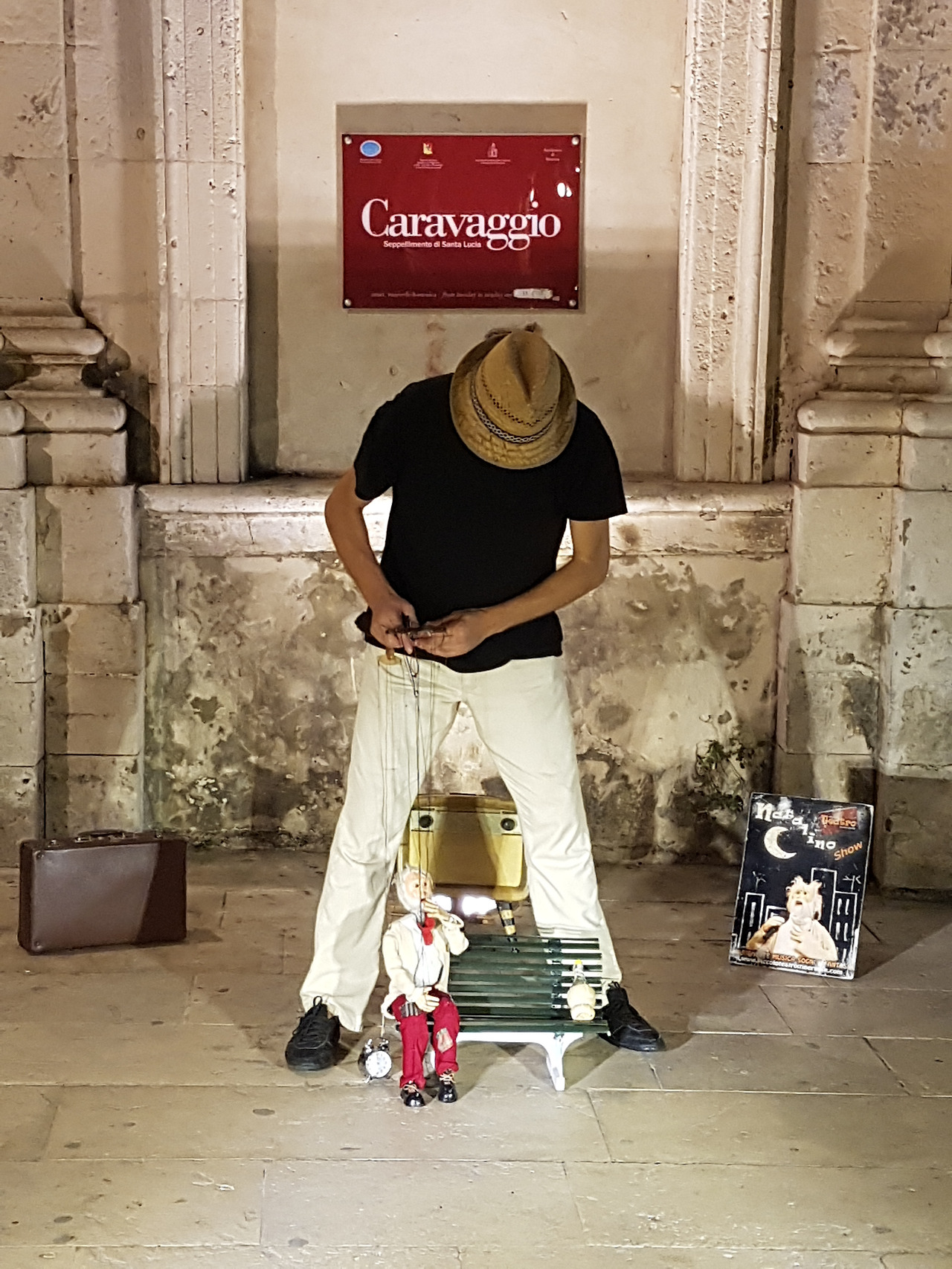 광장 남쪽으로 내려가다 보면 Chiesa di Santa Lucia alla Badia가 나타난다. 이 작은 성당은 카라바찌오(Caravaggio)의 걸작 Burial of St. Lucy(성 루치아의 매장)이 보관되어 있어 세계적인 명소가 되었다. 밤에 도착해서 작품을 감상할 수는 없었지만, 대신 거리공연으로 재미있는 인형극을 볼 수 있었다. 정말 정교한 손놀림으로 다루는 꼭두각시 인형은 살아 있는 듯한 착각을 불러일으킨다.