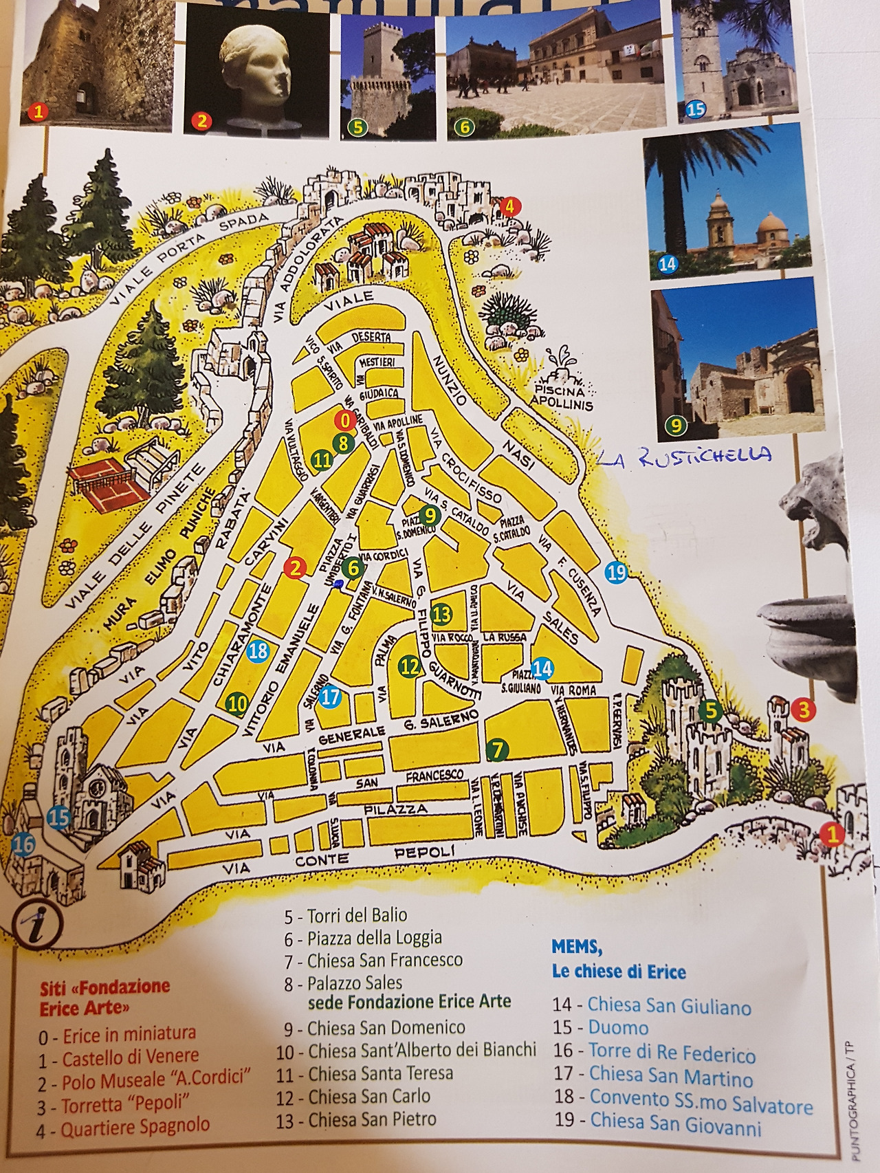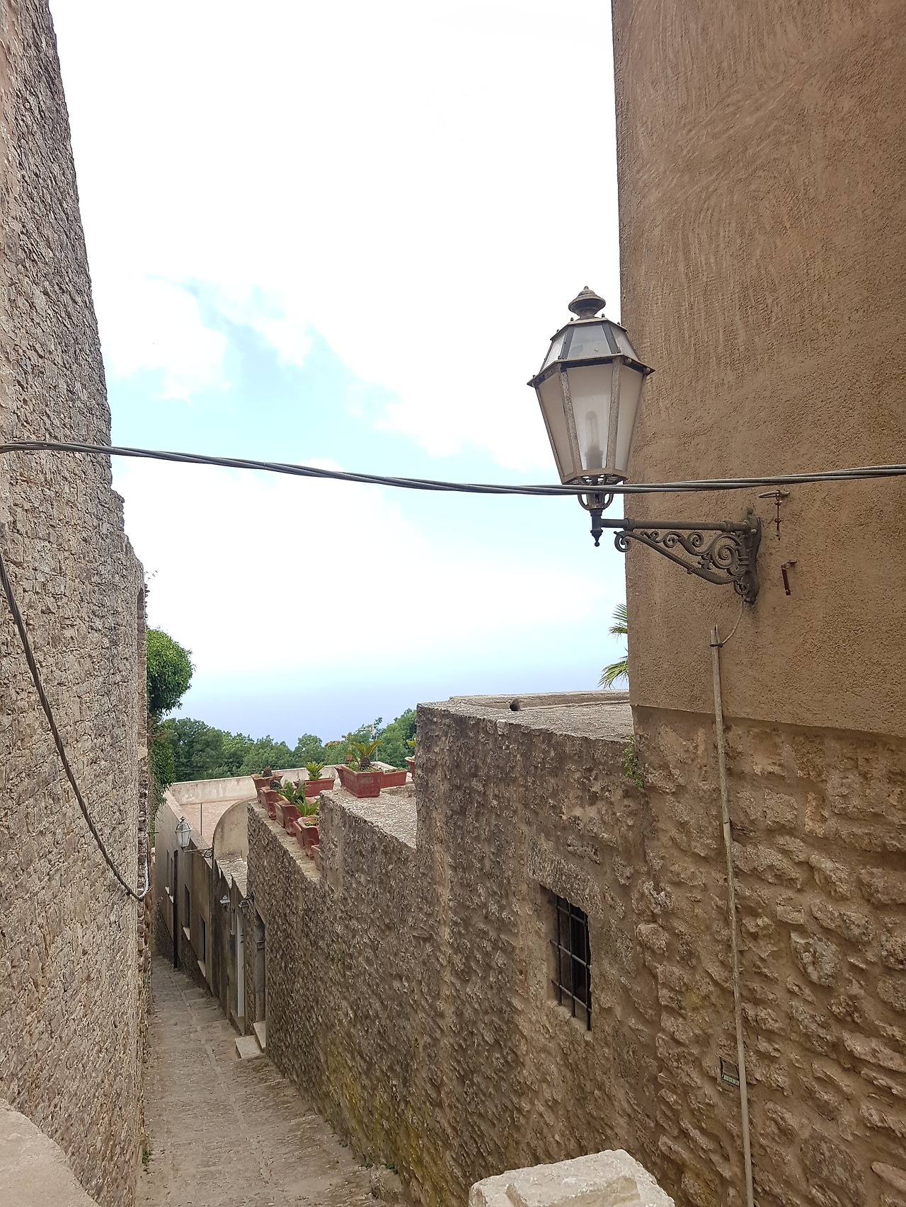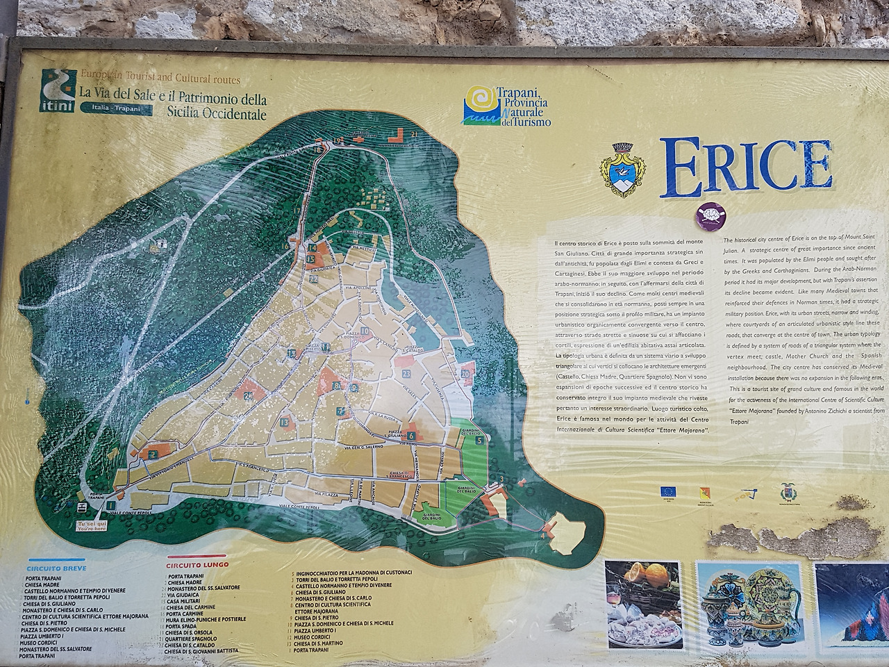 염전과 와인이 유명한 시칠리아의 서쪽 도시 트라파니에서 조금 더 가면 Eryx산 해발 750m 지점에 세워진 천공 도시 Erice가 있다. 이 마을에서 내려다보는 시칠리아 서부의 경치는 일품이다.