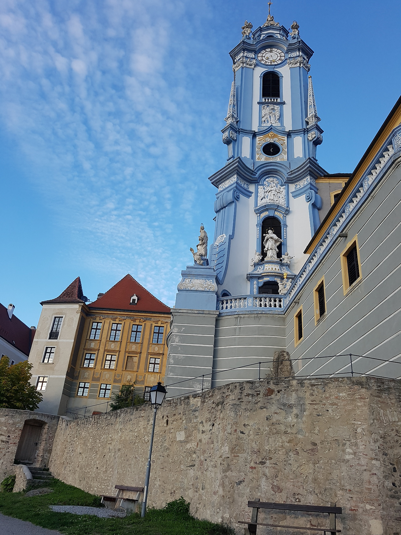 뒤른슈타인 수도원은 흔하지 않은 파스텔톤 색깔의 아름다운 수도원이다.