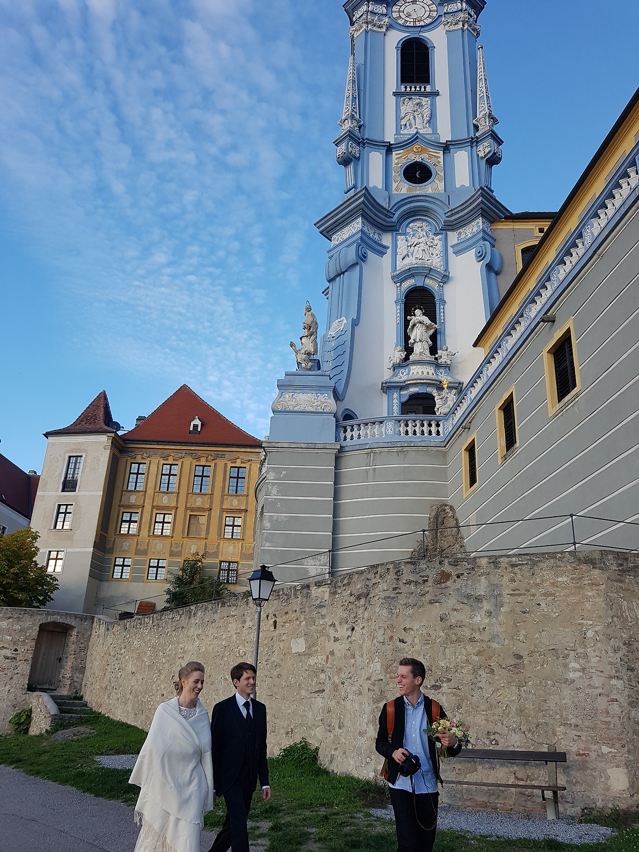 뒤른슈타인 강변이 아름다워서인지 결혼식 촬영을 하고 있었다.