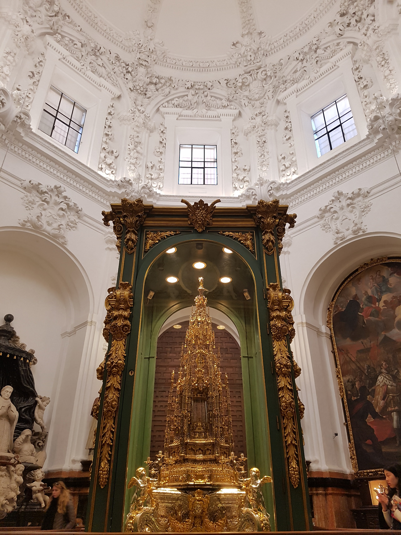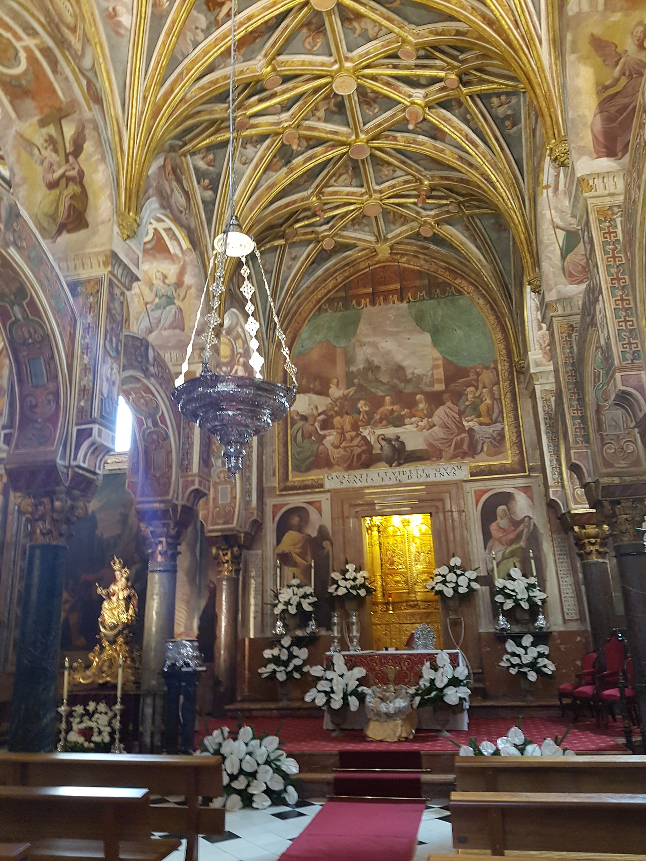메스끼따의 이야기로 돌아와서 건물의 중앙 부분에 당시 왕 까를 5세가 성직자들에게 설득되어 16세기에 만들었다는 까떼드랄(성당)이 있다. 하지만 완공 후에 왕은 어디에도 없는 것을 부수고 어디에나 있는 것을 지었다며 탄식하였다고 한다.