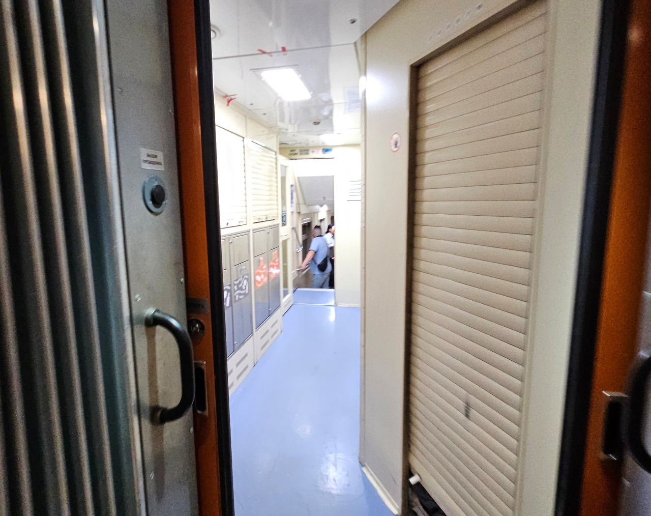 2층으로 된 객차로 각 층에 8개의 쿠페 4인실이 있어서, 한 객차에 64명이 탑승하고, 각 객차에 승무원 1명 및 화장실 3개가 딸려있는 구조였어요.