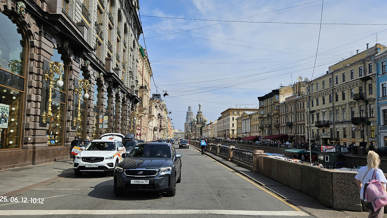기념품 같은거 혹시 볼게 있는 지 찾아보려고 시내 네프스키대로에 위치한 돔끄니기를 첫번째 행선지로 잡아 보았어요. 돔끄니기 가는 길에 카잔성당도 바로 맞은편에 있어서 아침의 신선한 풍경을 배경으로 잠시 사진도 찍었습니다. 이렇게 관광지가 한곳에 붙어 있어서 상트페테르부르크의 네프스키대로는 여행객들에게 더 많은 경험을 선사해 주는 것 같습니다.