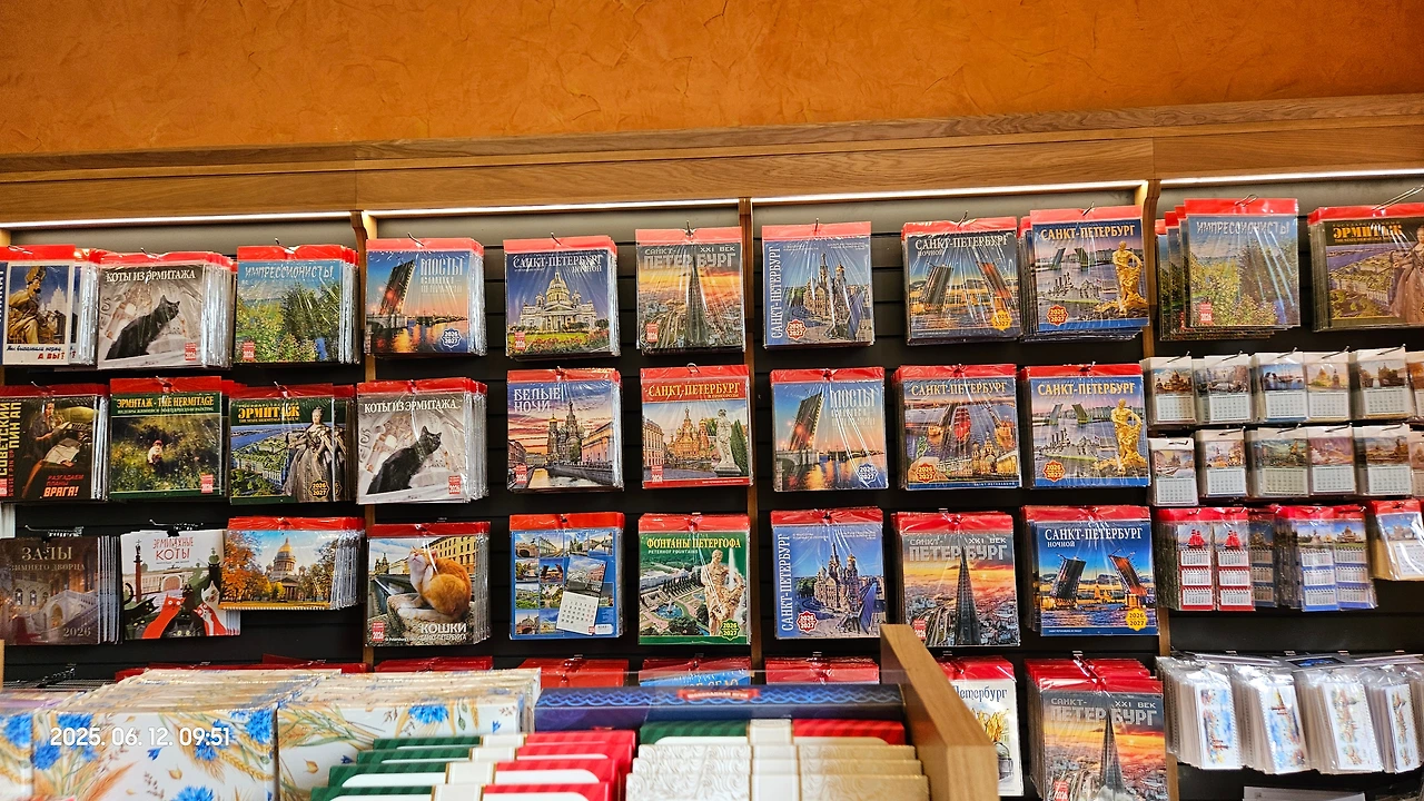 반대로, 러시아만의 독특한 굿즈들이 많아서 볼거리는 많습니다. 특히 제눈에 들어온 건 책을 작게 미니어처 형식으로 만들어서 상트에 대한 테마로 역은 전집류. 몇 개사가서 한국에 학과선배 등에게 선물해도 좋을만한 것들이 많았습니다. 상트페테르부르크에 대한 책들과 캘린더, 마트료쉬카, 마그넷, 텀블러, 초콜릿 등도 있어서 사고자 하면 겉잡을 수 없을 것 같기도 하였습니다.