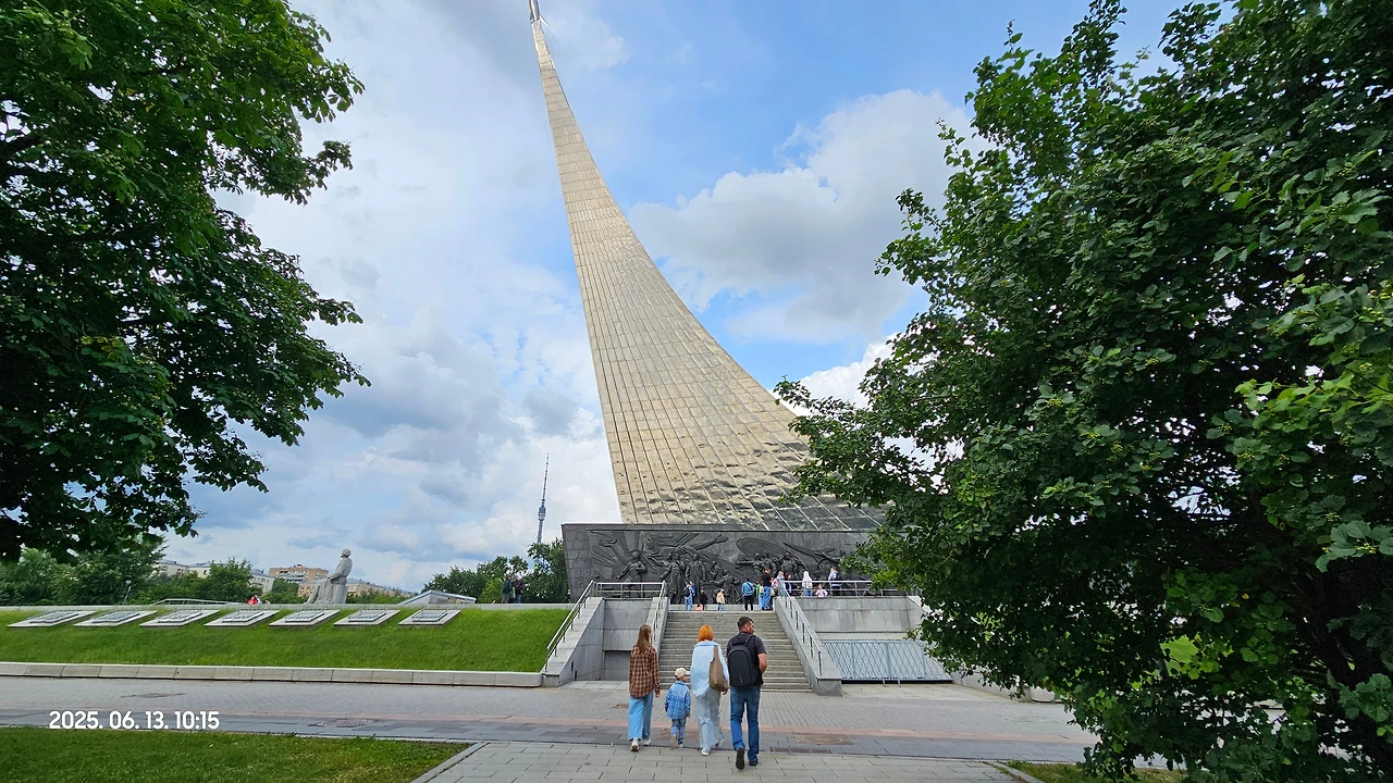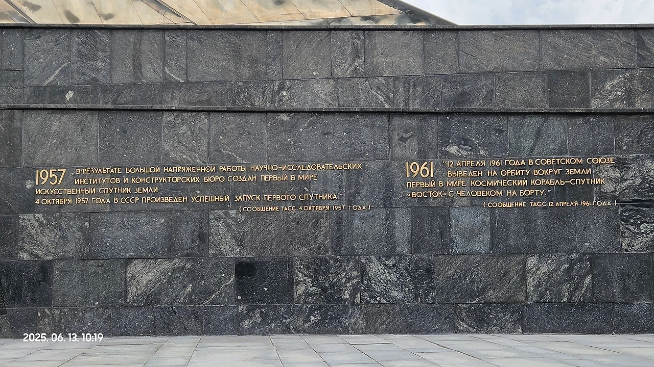 이 기념비는 1958년 스푸트니크 발사 후 우주시대를 기녕하기 위해서 공모전을 통해 설계되었고, 1964년에 개관했다고 합니다. 그리고 기념탑 하부에는 각종 조각과 함께 우주비행사 기념박물관 Museum of Cosmonautics 이 들어서 있어요.