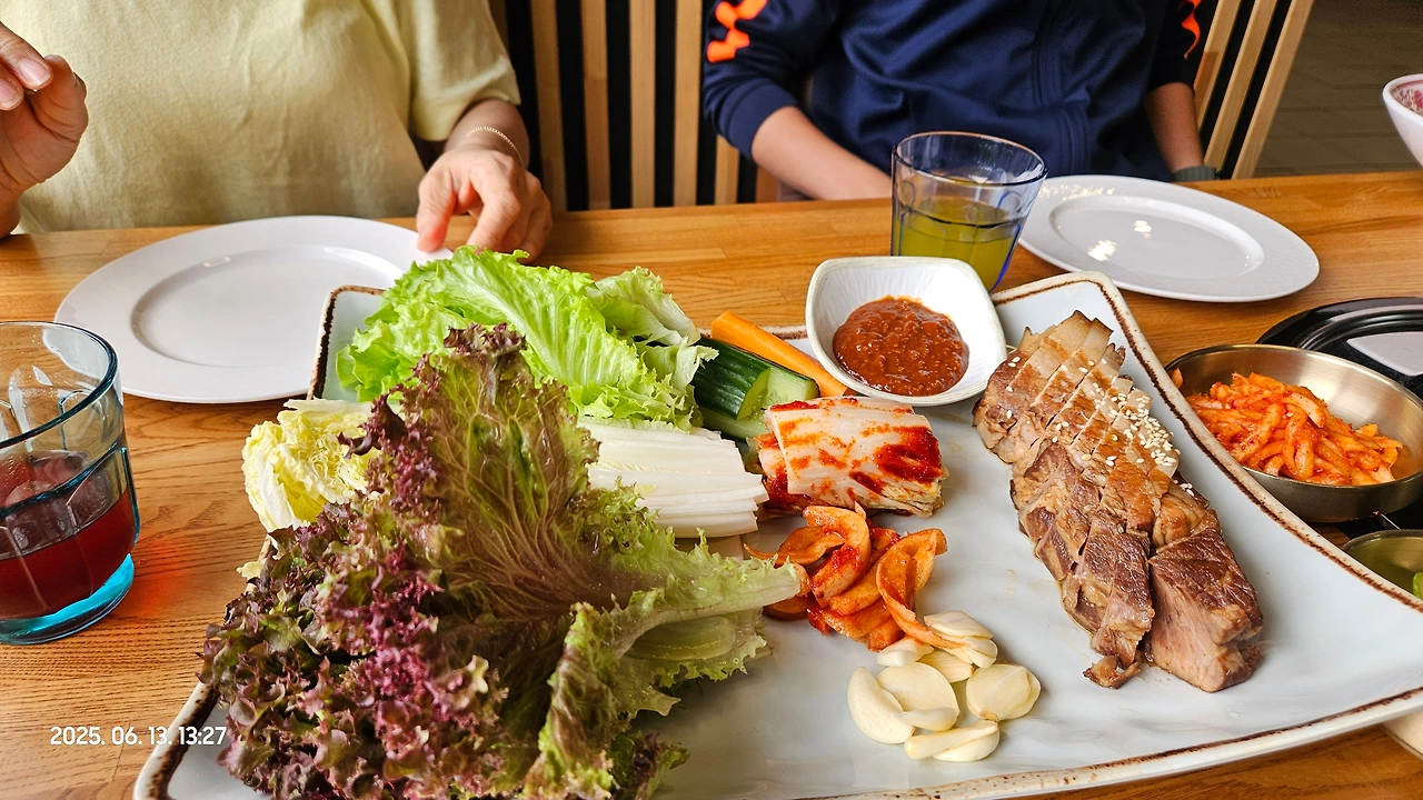 감자탕은 한국에서 먹던 그 맛 그대로였고, 요즘 한국에서 잘 안 올려주는 감자 한덩이도 푸짐하게 얹어 주셨어요. 보쌈도 잘 삶아졌고 (저는 개인적으로 지방이 더 있으면 좋았지만), 잔치국수도 맛있게 되어서 즐거운 점심식사를 마칠 수 있었습니다.
