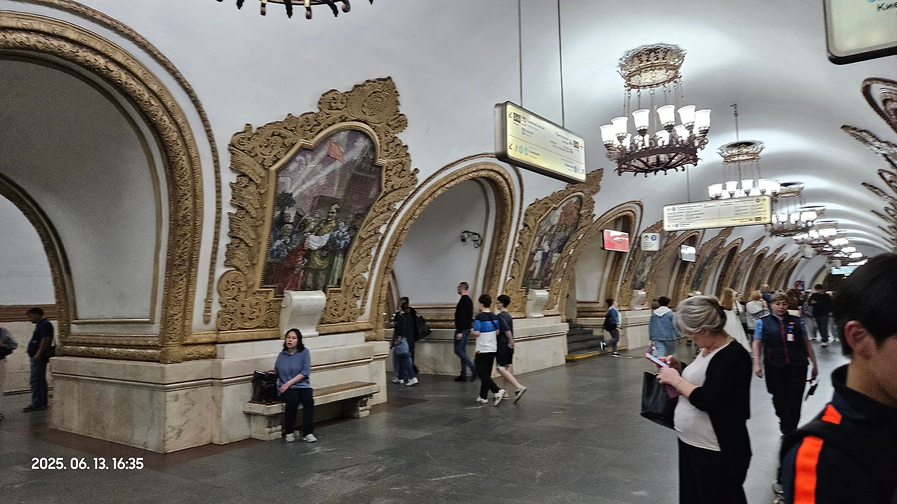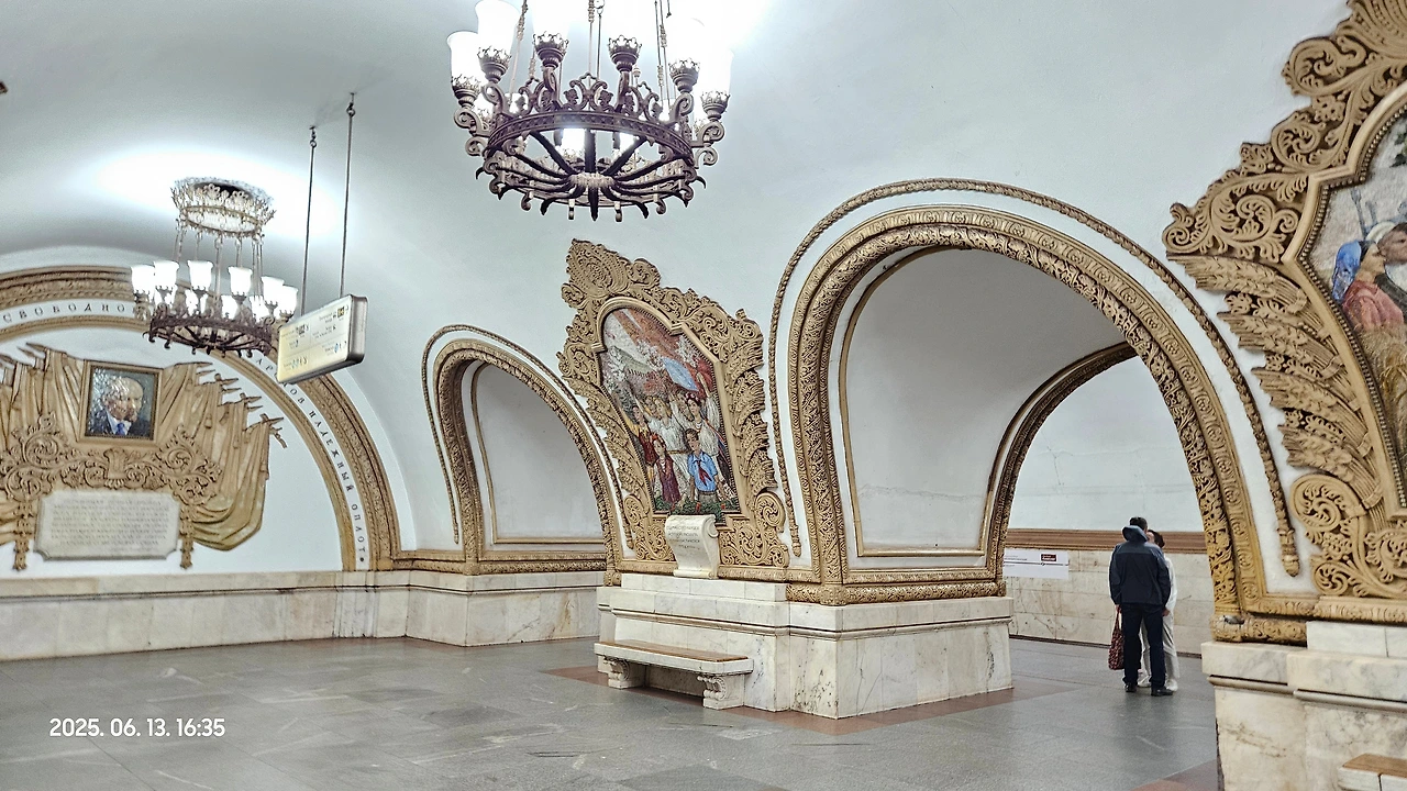 키옙스카야 역에는 쏘련의 위대함을 선전하는 모자이크 벽화들로 가득