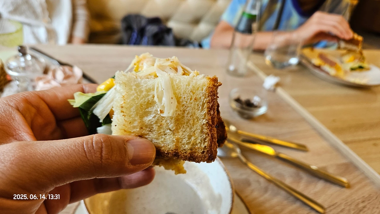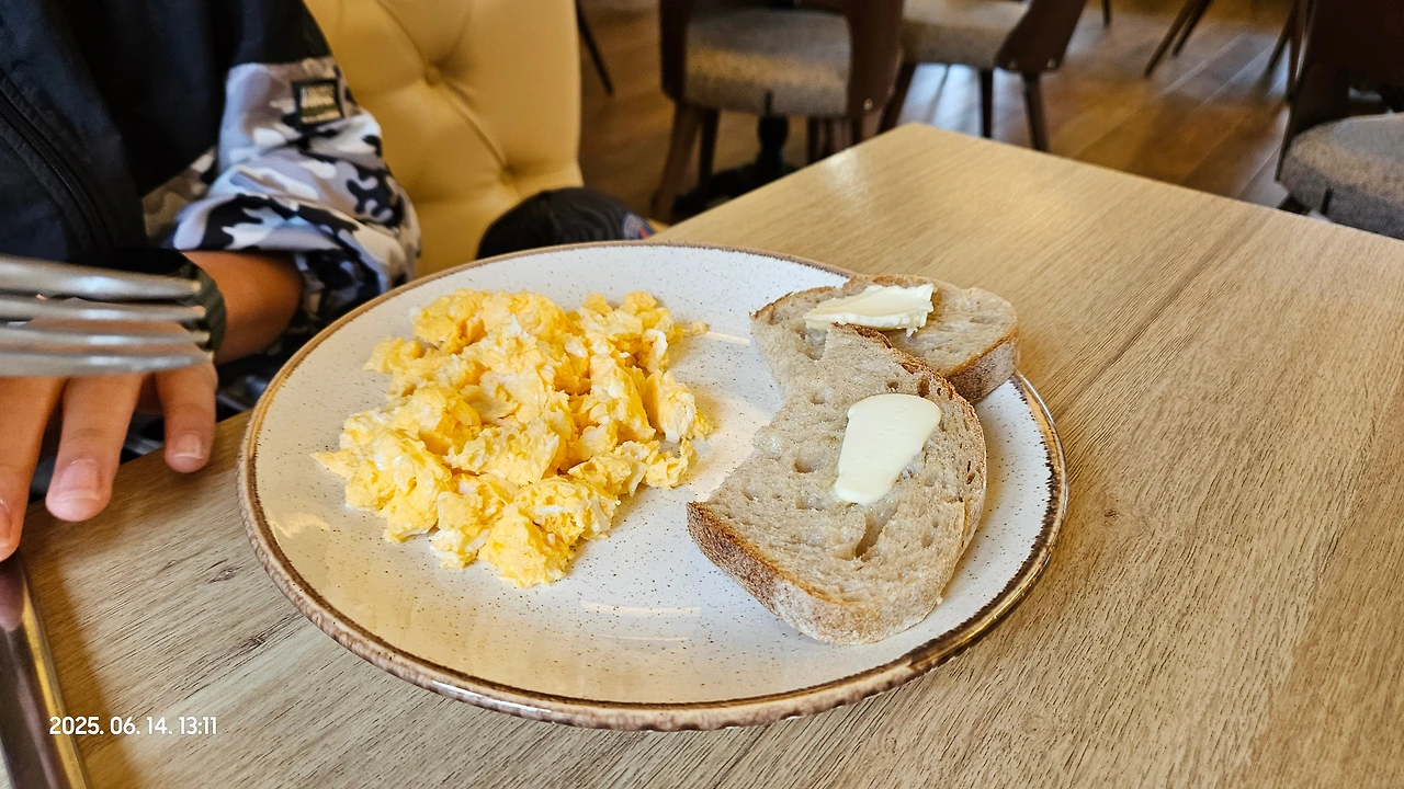 여기에는 컨티넨탈 조식처럼 세트메뉴로 시킬 수 있는 것들이 있어서 수프와 함께 주문했고, 빵종류를 따로 시켰습니다.전체적으로는 가격이 저렴하지 않았지만, 확실한 장점은 키오스크로 테이블오더가 가능하다는 점이 장점이었어요.