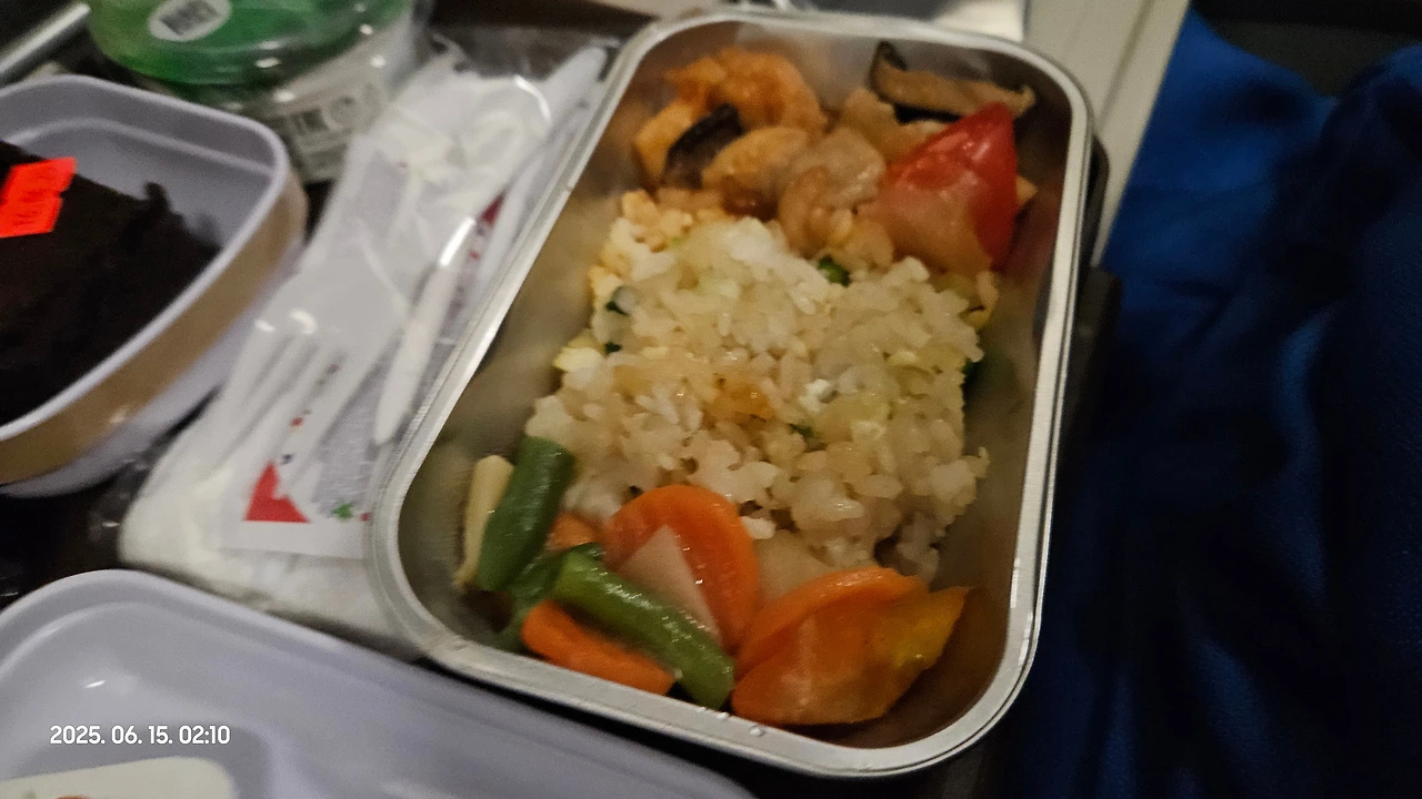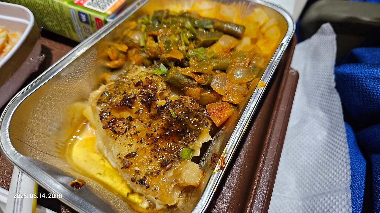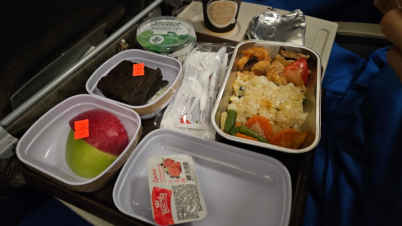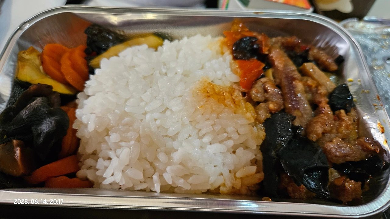 동방항공 MU592 모스크바 발 상하이 행 비행기는 약 8시간 30분 정도 비행시간 동안 두번의 식사를 줍니다. 두번 다 밥과 다른거 중에 고를 수 있었는데 모두 나쁘지 않았지만, 저는 밥종류가 더 나았습니다.