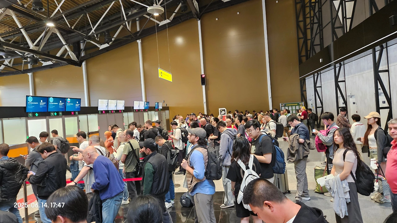 첫번째, 공항터미널 건물에 들어갈 때 짐검사하면서 꽤 오랜시간 줄을 서서 기다리게 됩니다. (전쟁의 영향인 듯 예전보다 더 강해졌습니다.)