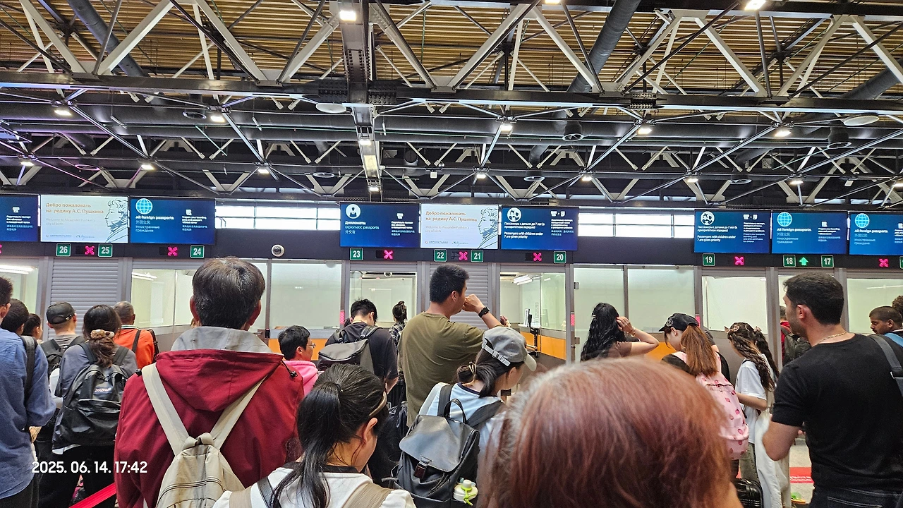 결론적으로, 전쟁중인 러시아는 테러 또는 적국의 공격에 대비하기 때문인지 보안 등의 문제가 점점 강화되는 것 같습니다. 그리고 아마도 일할 사람도 모자란다는 느낌을 받았어요. 그래서 그런지 공항이 더 북새통이 되어가는 상황.