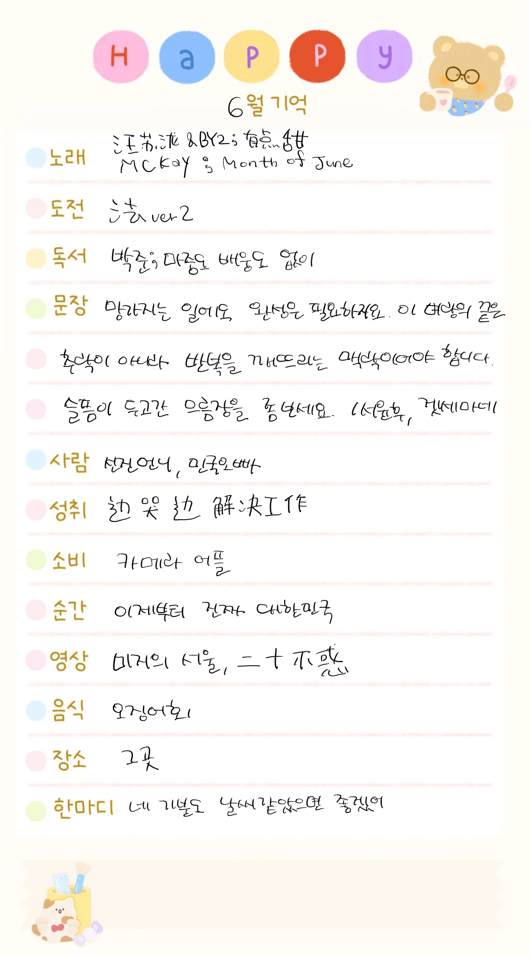 6월 한마디 : 네 기분도 날씨 같았으면 좋겠어