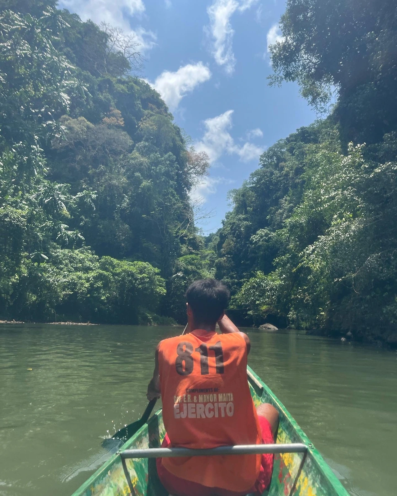 강의 상류에 도착해서는 뗏목을 타고 폭포수 아래로 들어간다. 보호 헬멧을 쓰고있어도 머리가 욱신거릴정도로 거센 폭포수가 마구 쏟아진다.