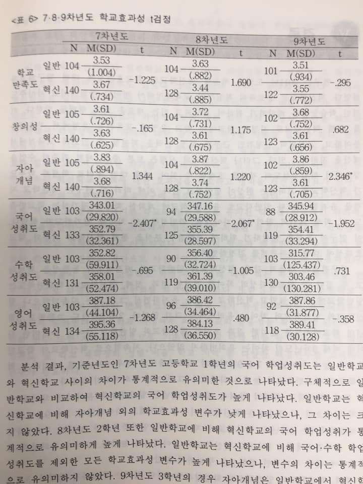 이번 연구는 그동안 서울시교육청이 10년 동안 시행해 온 종단연구자료를 공개함으로써 이루어졌는데 혁신학교 여부가 학생들의 학교효과성에 유의미한 차이와 영향을 미쳤는지 경향 점수 분석을 수행한 결과다. 연구는 로지스트 희귀 분석 모형으로 모든 학교가 혁신학교에 속할 확률인 경향 점수 추정치를 산출하고 매칭을 통해 혁신학교 집단과 경향 점수가 동등한 일반학교 집단을 구성한 후 동등한 배경 변수를 가지고 있는 것으로 매칭 된 학교에 재학한 학생 자료를 사용하여 학교효과성의 변화를 분석한 것이다. 이는 그동안 혁신학교 연구가 혁신학교와 일반학교의 학업성취 수준이나 사회경제적 배경 등 관련 영향요인을 통제하지 않은 채 결과만 가지고 단순 비교한 것에 비해서는 한 단계 발전한 연구로 평가된다.