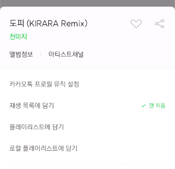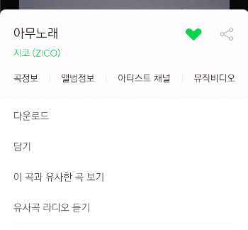 3-2) 곡의 개별 정보화면에서 '담기'를 기타 아이콘 안에 여러 기능과 함께 넣어 놓아 원하는 곡을 재생목록이나 플레이리스트에 추가하는 과정에서 위 기능을 찾지 못해 헤매는 경우도 많았다.