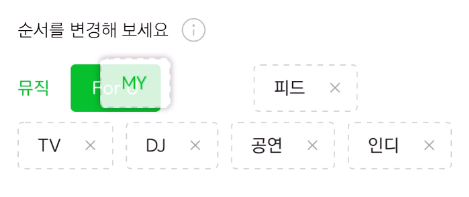 홈 편집 화면에서 메뉴의 순서를 옮기는 모션이 순서 변경보다는 포함되는 듯한 이미지가 강해서 순서를 편집하는데 어려움을 겪는 경우가 많았다. 그동안 다른 많은 어플을 사용하면서 학습되어온 경험으로, 메뉴를 이동하면 바로 앞의 메뉴와 위치가 바뀔 것이라고 기대한 것이다. 그러나 멜론의 메뉴 순서 변경은 즉각적인 모션이 아닌 앞의 아이콘의 색이 변경되는 방식이었다. 때문에 참여자들은 자신이 이동하고자 한 아이콘이 앞의 아이콘에 포함되거나, 아예 사라져 버릴 것 같은 느낌을 받았다고 했다.