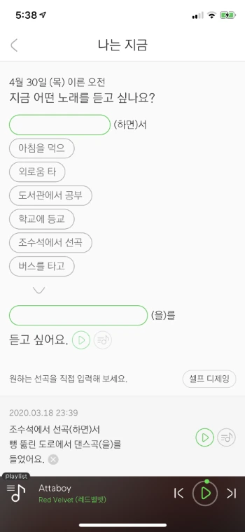 이에 더해 멜론이 강조해온 목표인 '뮤직 라이프의 확장'은 멜론의 서비스 방향에서도 잘 드러나고 있었다. 멜론 어플의 다양한 기능들을 살펴보면, 사용자에게 다채로운 음악 경험을 제공하기 위한 탐구정신이 돋보인다. 실제로 자유롭게 어플을 사용해보던 한 참여자는 For You에서 셀프 디제잉의 '나는 지금'을 보고, 구체적인 문장을 이용하는 섬세한 음악 추천방식에 크게 놀랐다.