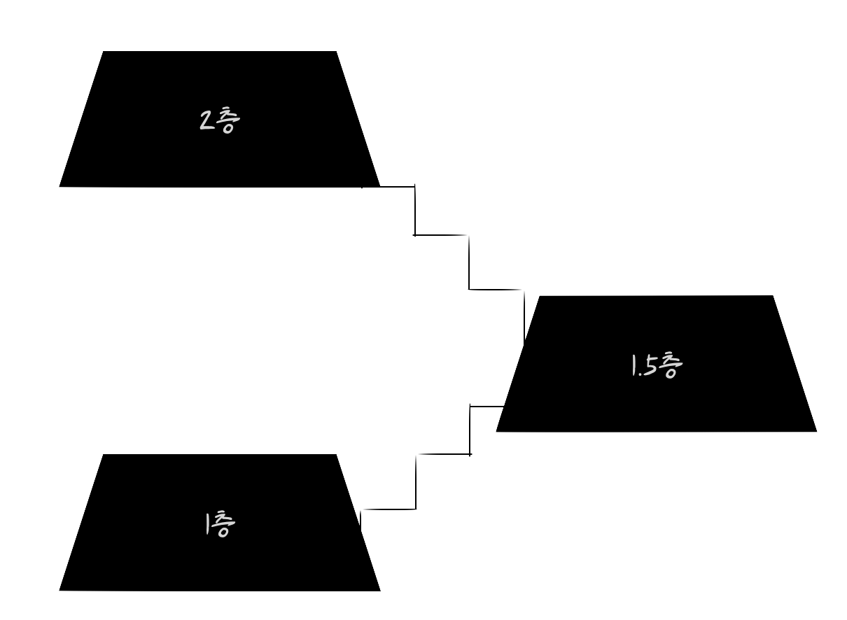 스킵플로어는 방과 방을 벽으로 나누는 대신 층계를 두어 반쯤 높여서 나누는 방식인데, 좁은 공간을 활용하기 좋다고 한다. 내가 고른 집은 4층짜리니까 공간은 총 7개다. 앞마당까지 치면 8개 공간이 있는 셈. 나는 이 공간을 모두 다르게 꾸밀 계획을 세웠는데, 그 이야기는 다음 글에서 써보겠다.