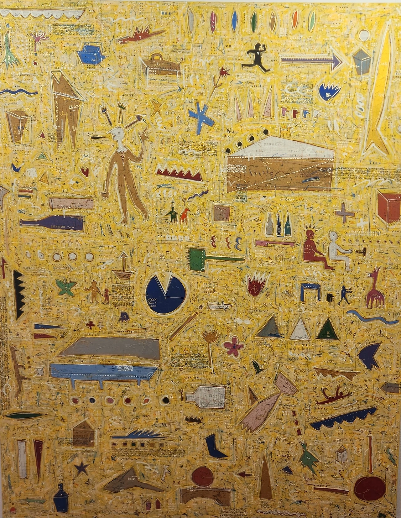 잠시 공백이 생긴 여유시간, 이번에는 여직원이 자발적으로 주목받고 있는 작품이라며 안내하였다. 그녀는 선뜻 관람객에게 말을 걸기 쉽지 않았다고 속마음도 토로했다. 그림 설명에 신이 나 보였다. 홍정우작가의 그림이라며 젊은 신인화가란다. 그저 어린이들의 낙서 같은 습작 이려니 하며 지나쳤더랬다. 낙서 같은 그림을 그리게 된 배경을 이야기로 시작했다. 어렸을 때 아버지와 함께 <인생은 아름다워>라는 영화를 보았던 일을 회상한 것이라 하는데 당시에는 무척 슬픈 영화로 기억되었다고 했다. 하지만 긍정적인 면으로 다시 인식하게 되면서 낙서 같은 그림에 천착하게 되었다고 말해주었다.