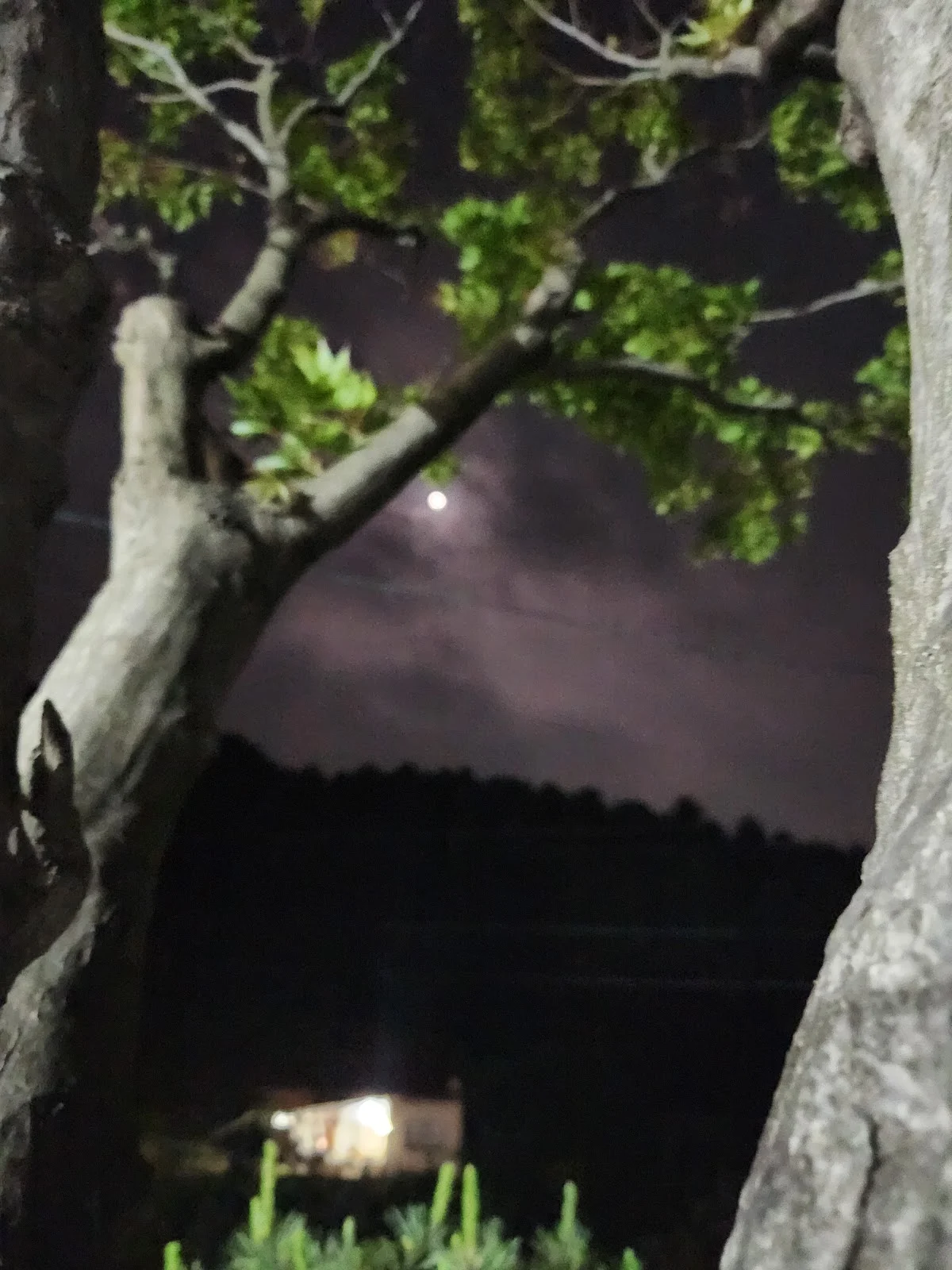 나무를 넘어 옅은 구름속에서 이미 보름달이 생긋하고 빛났다.